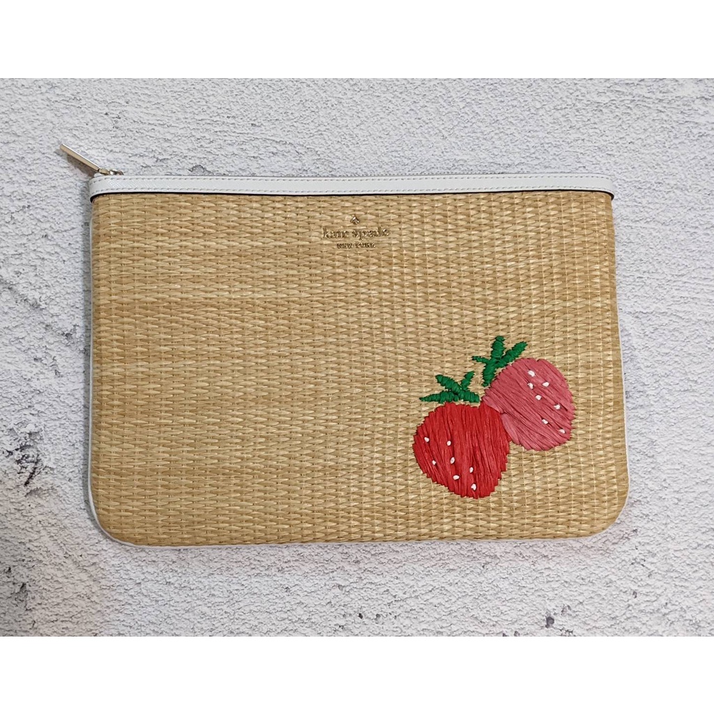 【Kate Spade】KS草莓竹編包 大手拿包 i pad包,全新現貨