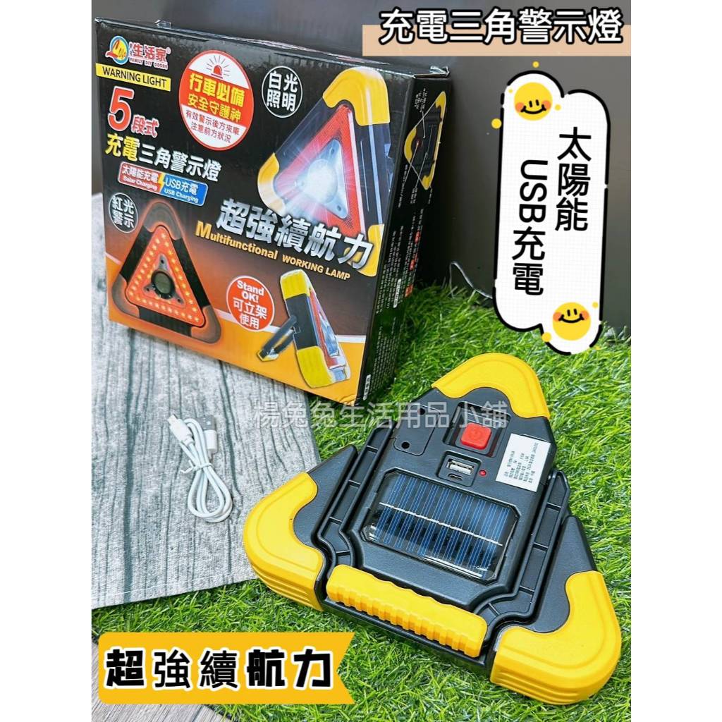 生活家5段式充電三角警示燈 三角警示燈 太陽能警示燈 充電式 三角燈 閃燈 警示燈 路障燈 閃燈 楊兔兔生活用品小舖