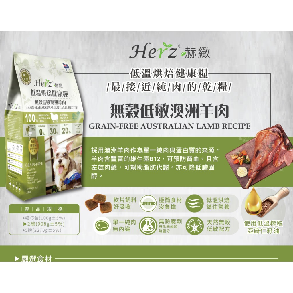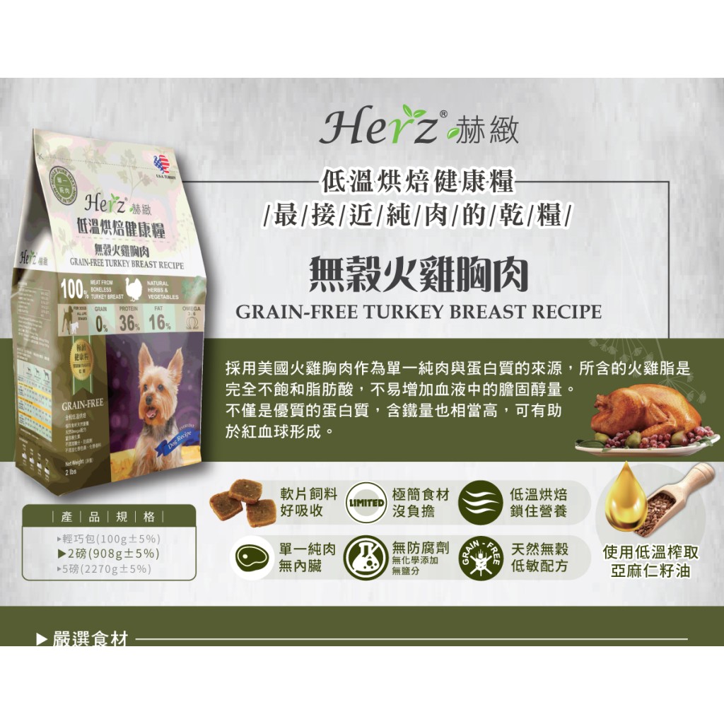 *特價*Herz 赫緻 低溫烘培健康糧 火雞胸肉/澳洲羊肉/草飼牛/赤靈芝 2磅/5磅 無榖 狗飼料 軟飼料 全犬 老