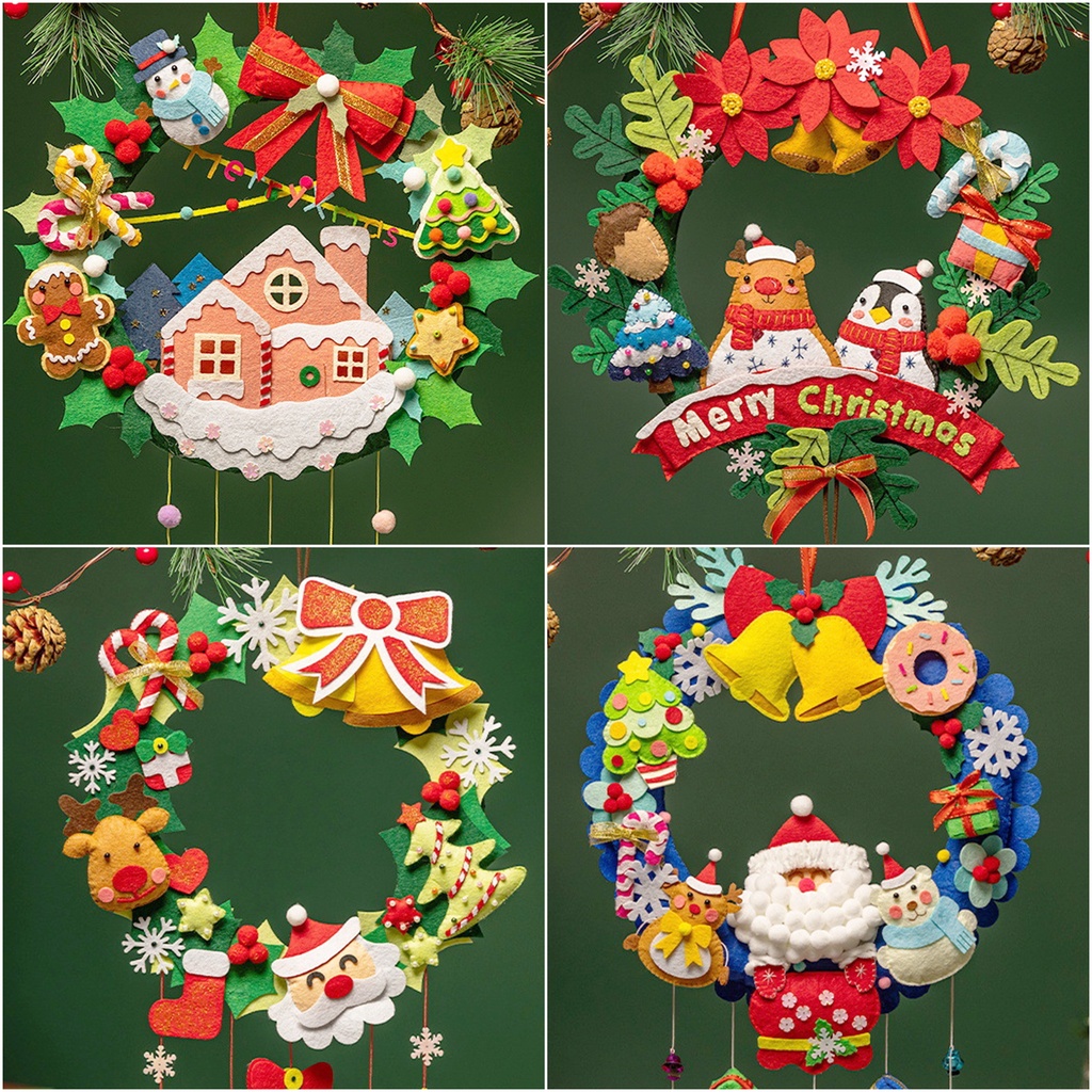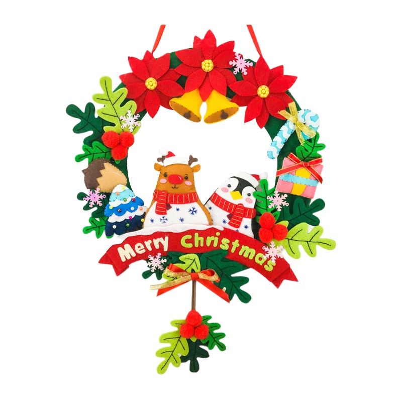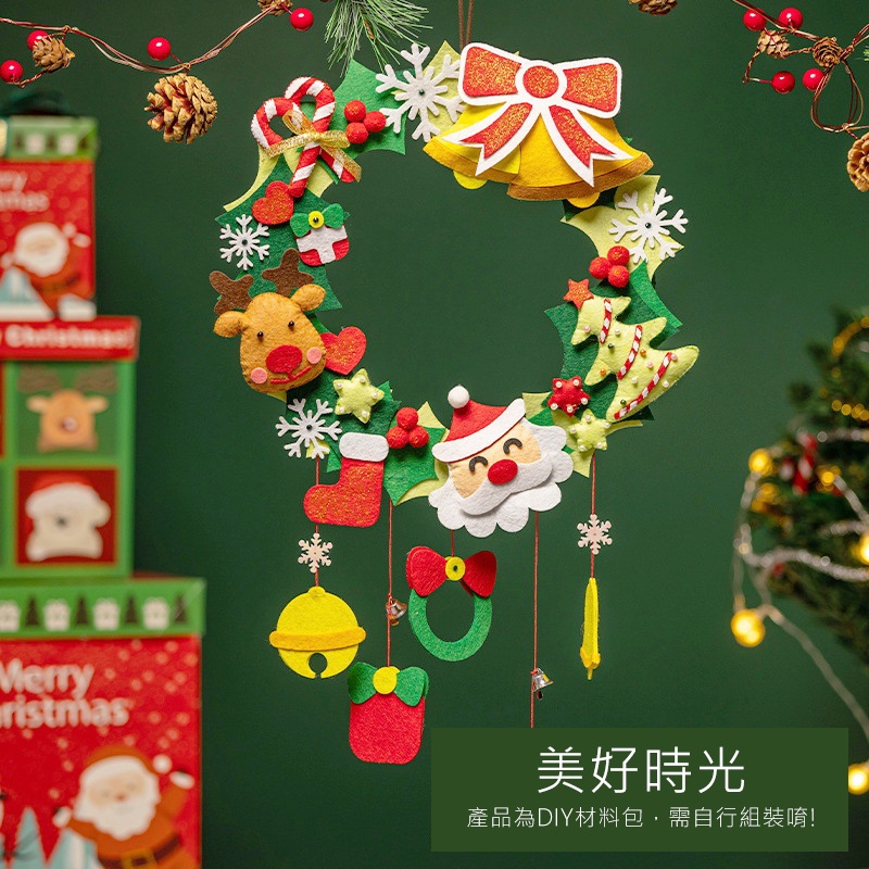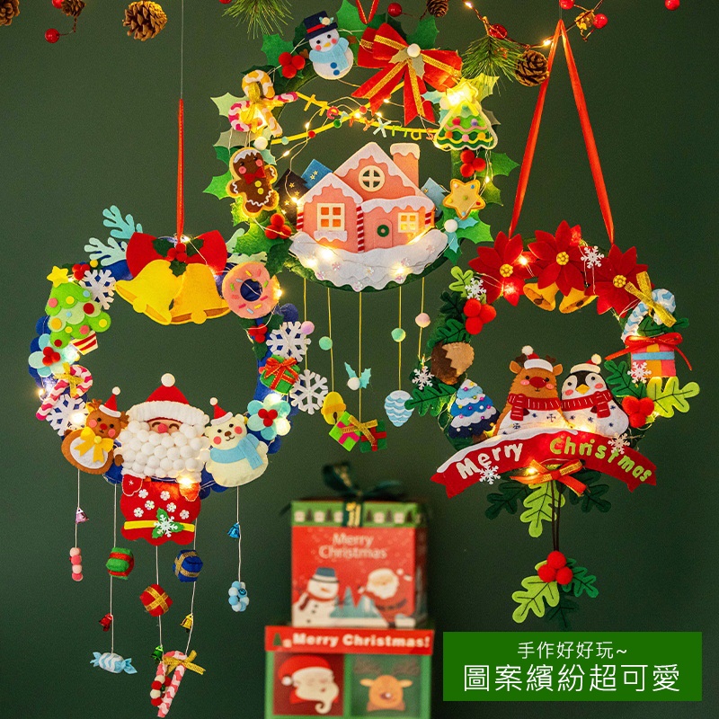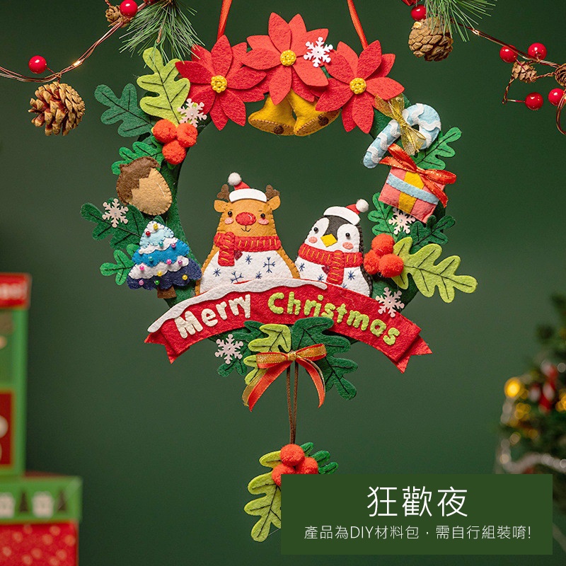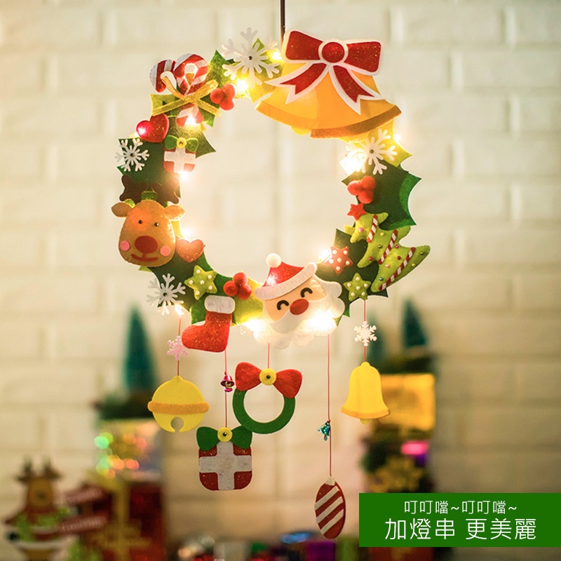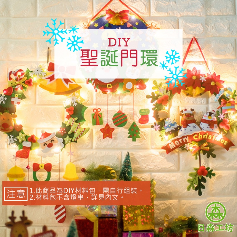 【日森工坊】聖誕門環DIY 附燈串 聖誕花圈 牆壁掛飾 不織布手作 聖誕裝飾品 聖誕節 平安夜 掛環 耶誕節門環 現貨