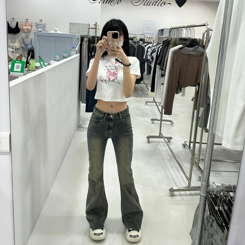 復古辣妹水洗牛仔喇叭褲(現貨)