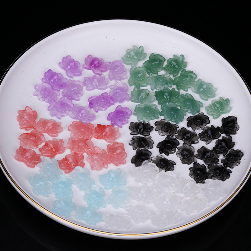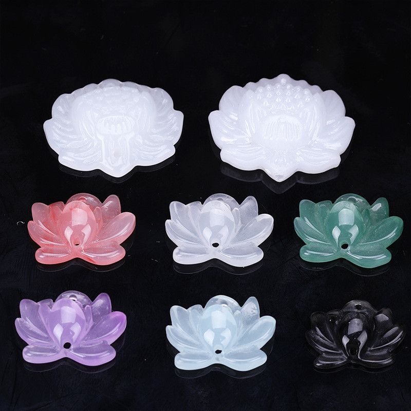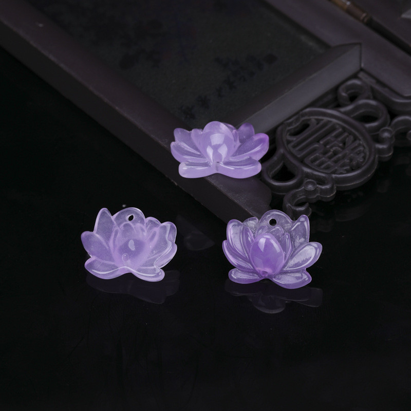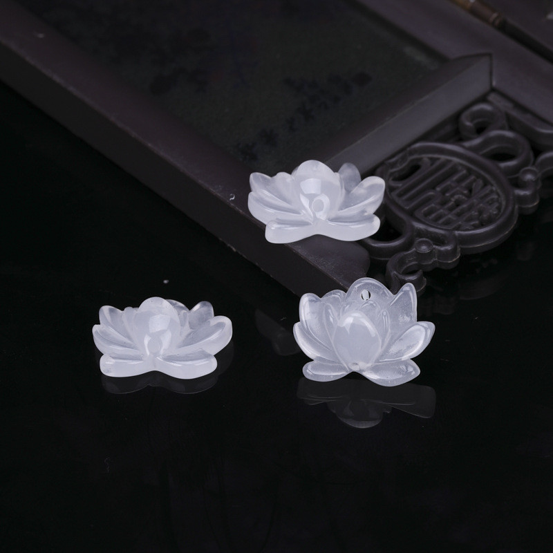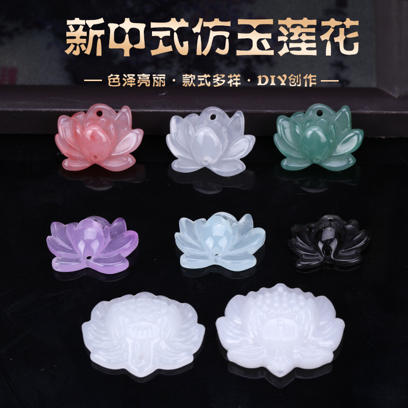 新中式樹脂仿白玉蓮花中國風手工飾品晶玉材料吊墜精緻掛件小配件