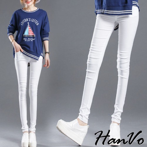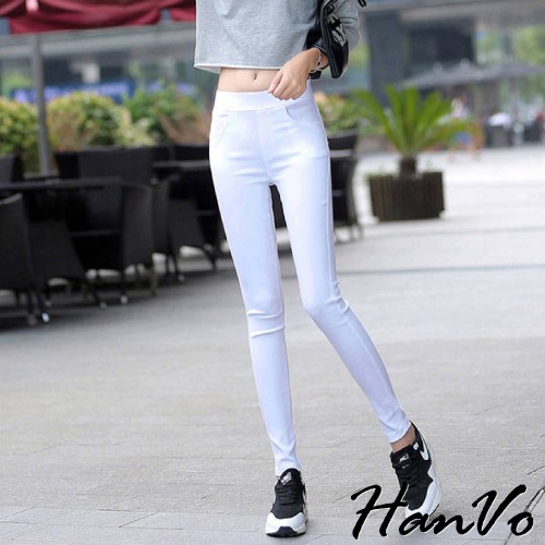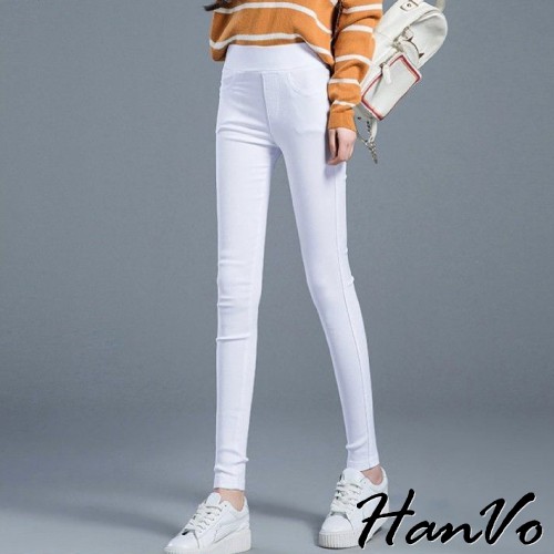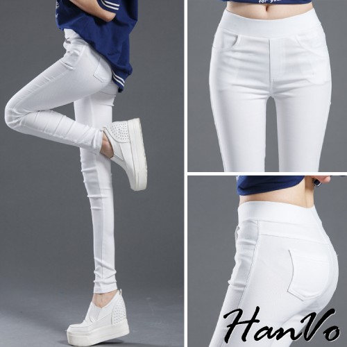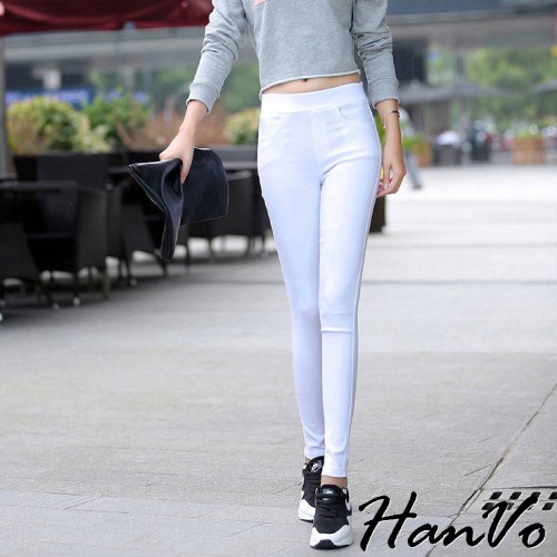 【HanVo】雙口袋鉛筆褲 現貨前後雙口袋激瘦不起球收腹窄管褲內搭褲小腳褲緊身褲魔術褲 韓系女裝 女生衣著 2514
