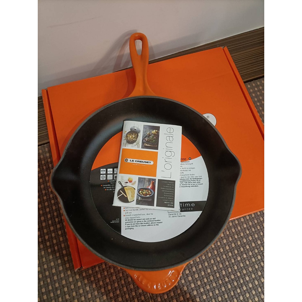 LE CREUSET典藏琺瑯鑄鐵圓鐵煎盤26cm-火焰橘