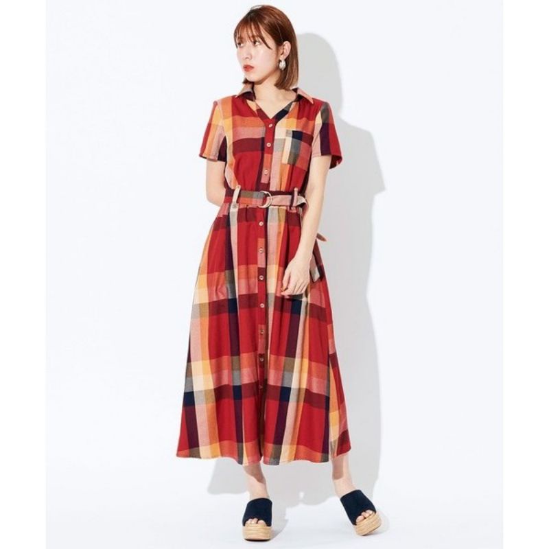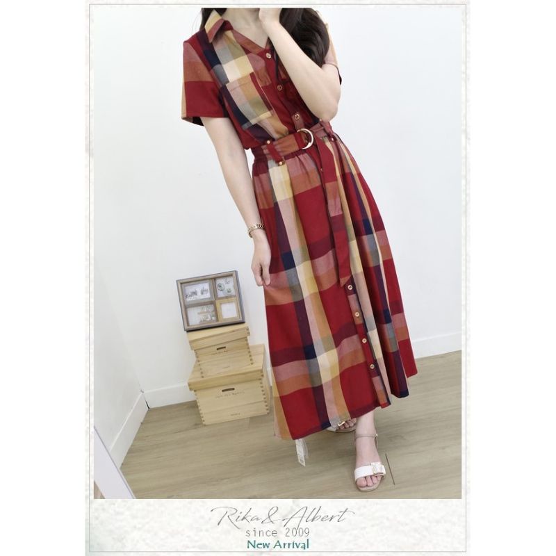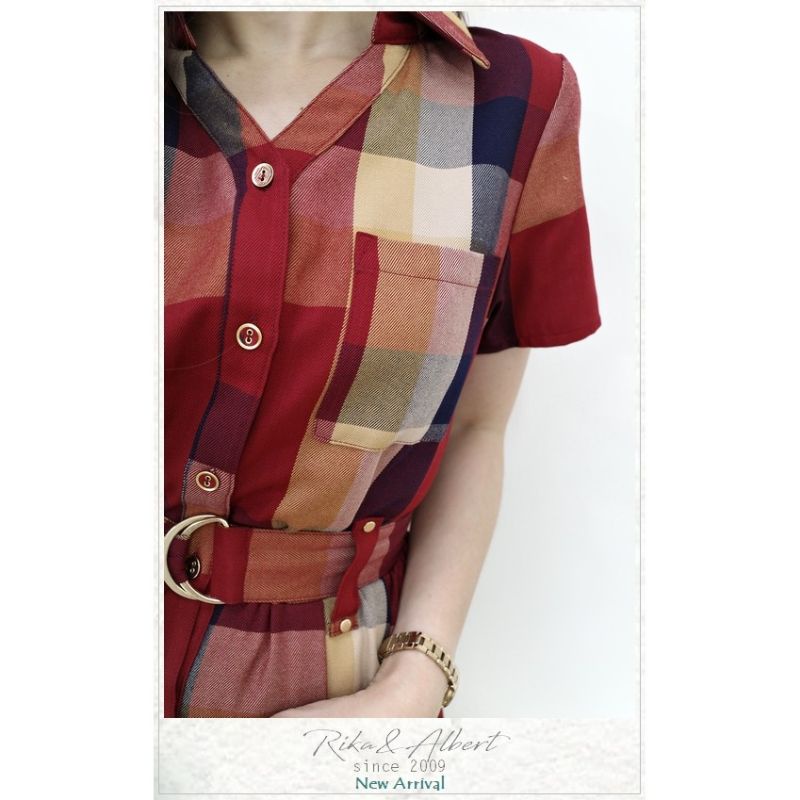 轉賣Rika&Albert REDYAZEL經典復古拼色格紋襯衫連身裙附釦環腰帶