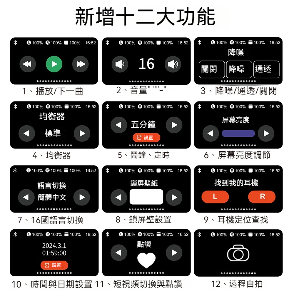 8H出貨 屏幕耳機 智慧熒幕耳機 5.4藍芽無線耳機 頂配A9pro 降噪 入耳式耳機 運動耳機 電競耳機 另售耳機配件