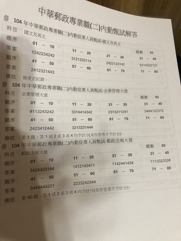 郵局招考中華郵政 內勤 歷屆考古題