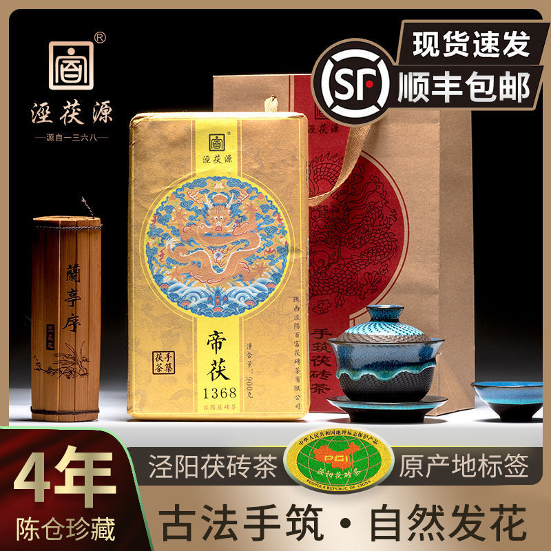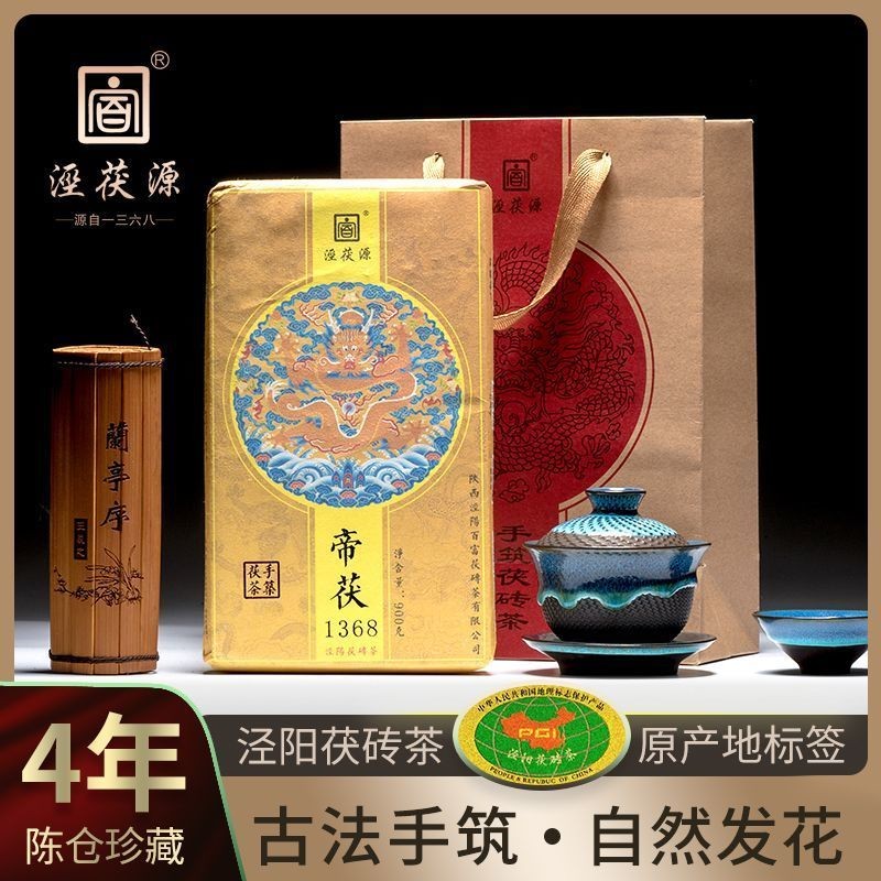高端品質臺灣出貨涇茯源涇陽茯茶陝西高檔黑茶金花茯茶茯磚茶官茶正宗帝茯900g