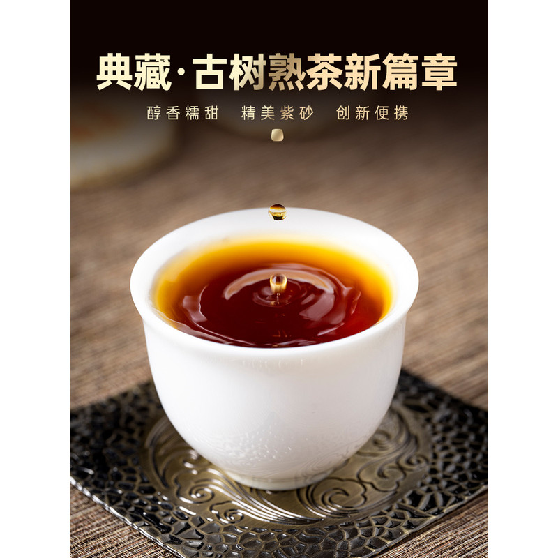 高端品質宮明雲南普洱茶熟茶小玉餅六年陳易武古樹熟茶小茶餅500g禮盒裝