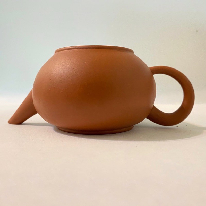 中國宜興白標紫砂壺10杯水平壺,一廠時期《中國宜興庚午年製1990》約200cc,紅泥。