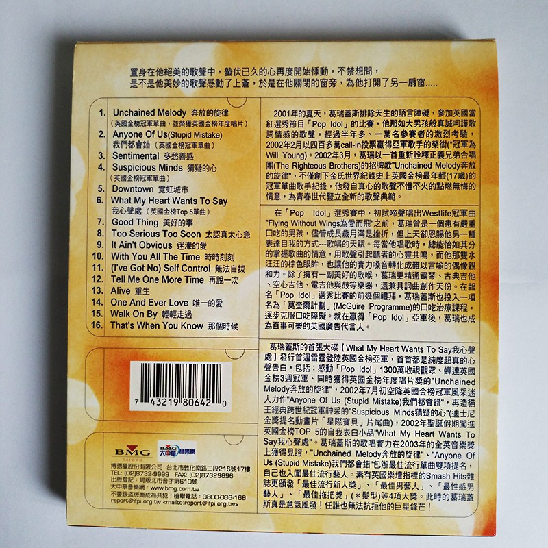 Gareth Gates 葛瑞蓋斯原版專輯【What my heart wants to say 我心聲處】