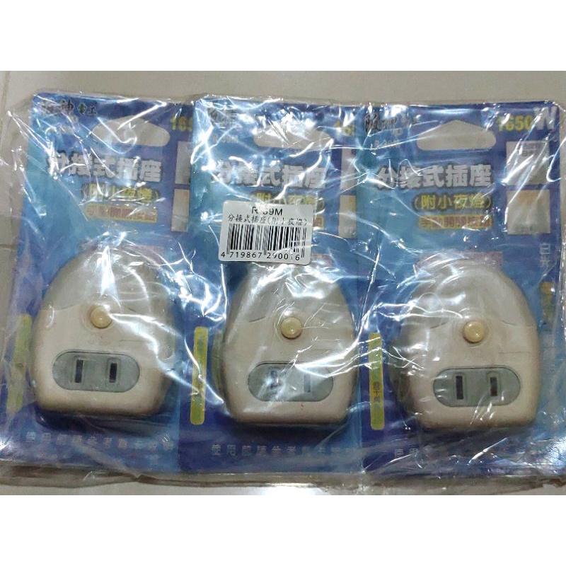 現貨阪神電工+分接式插座+附小夜燈+手動開關按鈕(黃光/白光) 分接式插座+夜燈(R-39M) 分接式插座附小夜燈