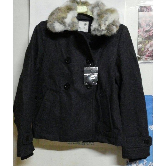 全新日貨正品earth music & ecology毛領羊毛外套大衣(深灰色S) EME LF DOBE Lynn