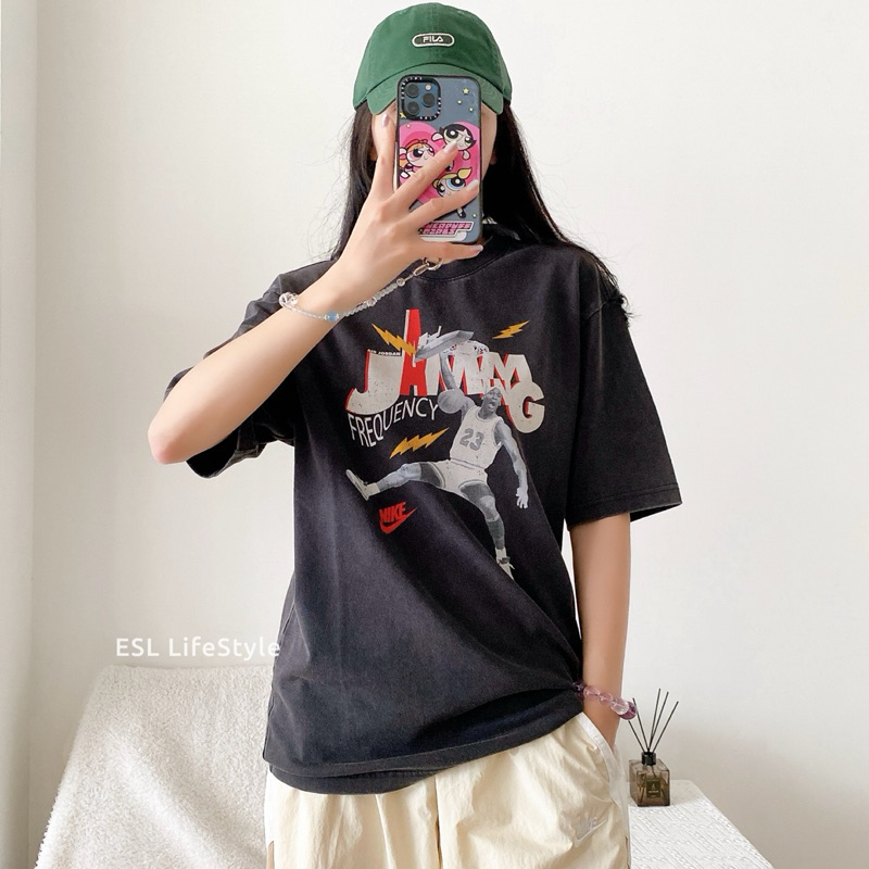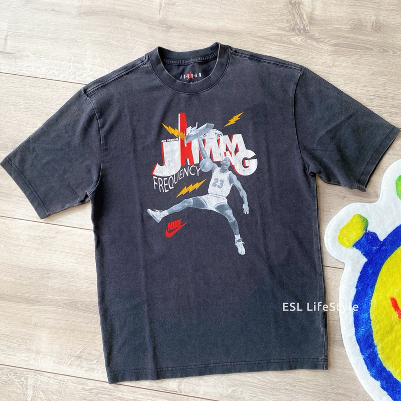 -ESL- 現貨 AIR JORDAN AJ 水洗 黑色 經典 復古 印花 短袖 T恤 短T 男生 HJ2930-010