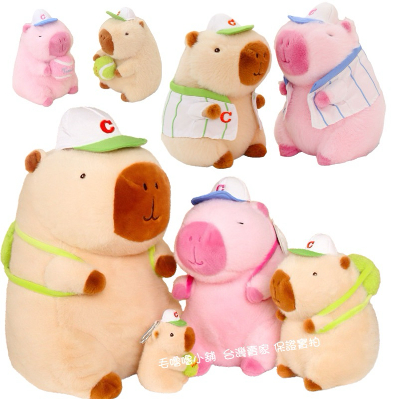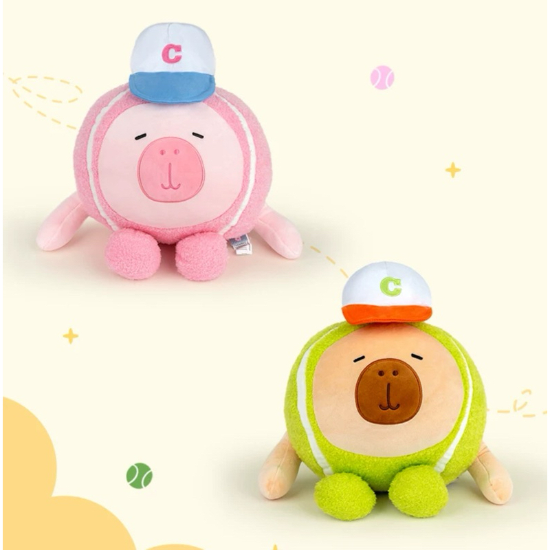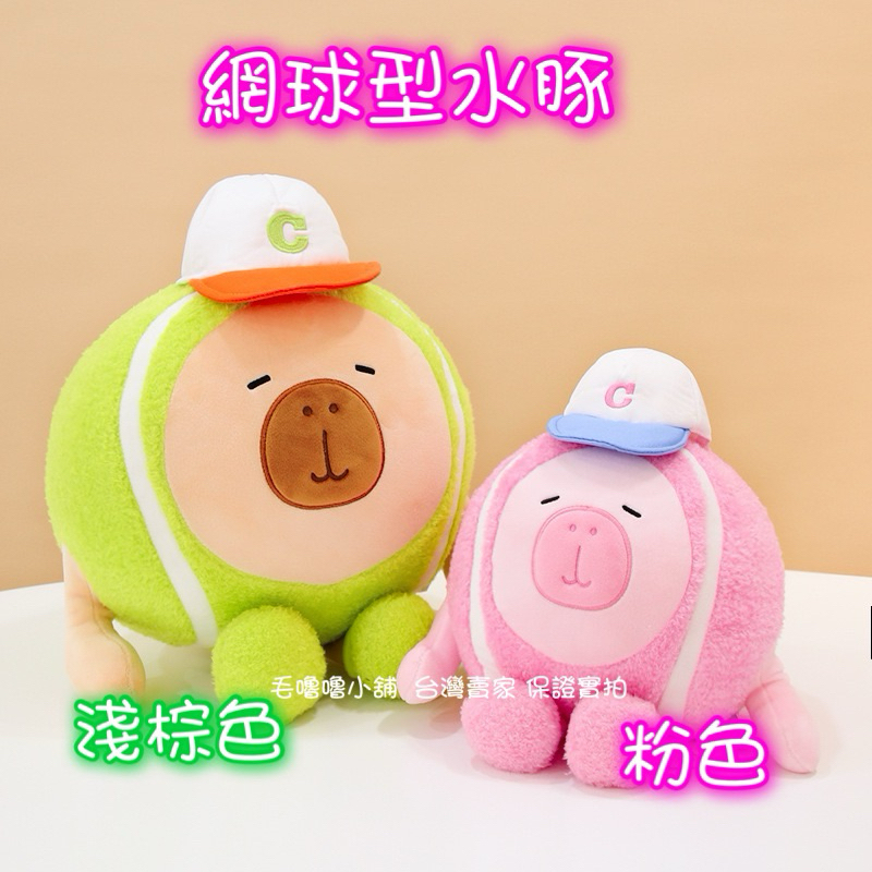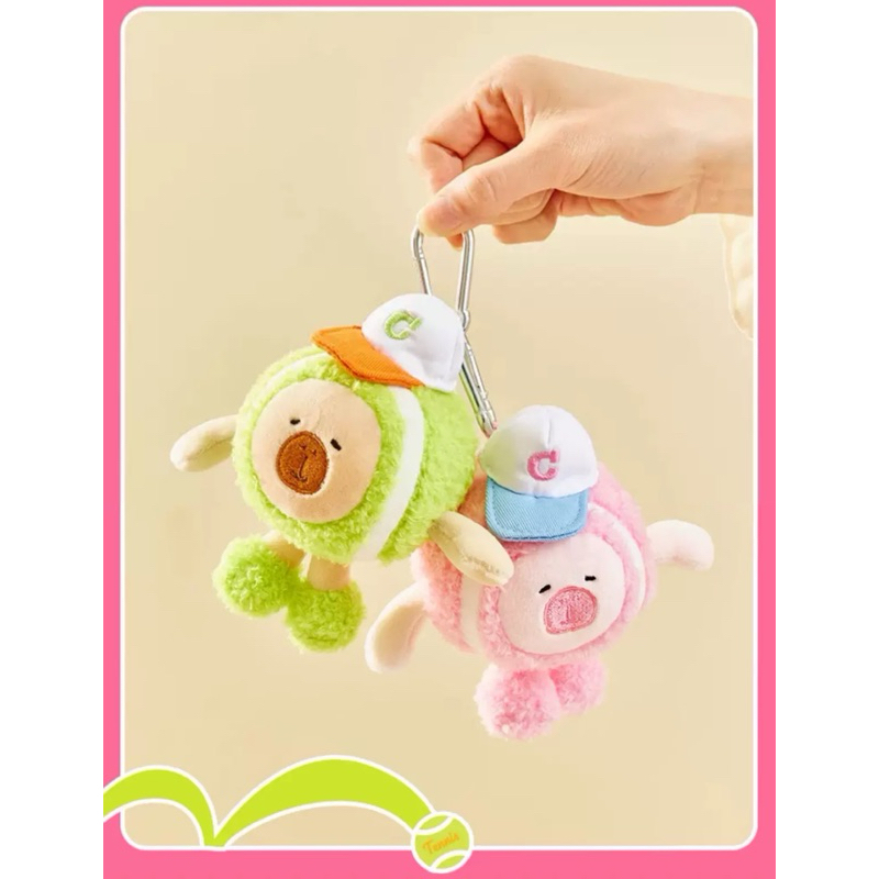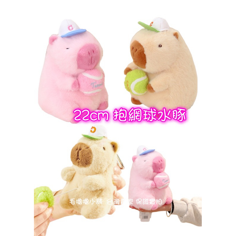 台灣現貨❤️正版譚健次同款運動水豚網球卡皮巴拉抱枕掛件吊飾拉線伸縮網球水豚