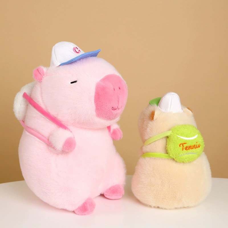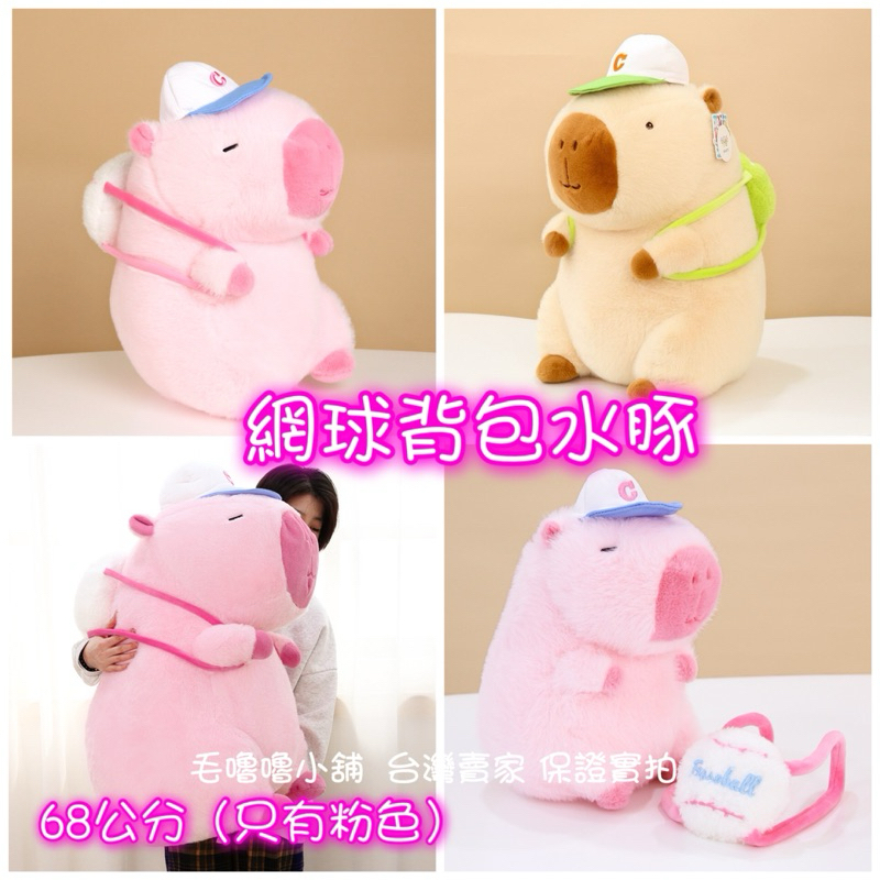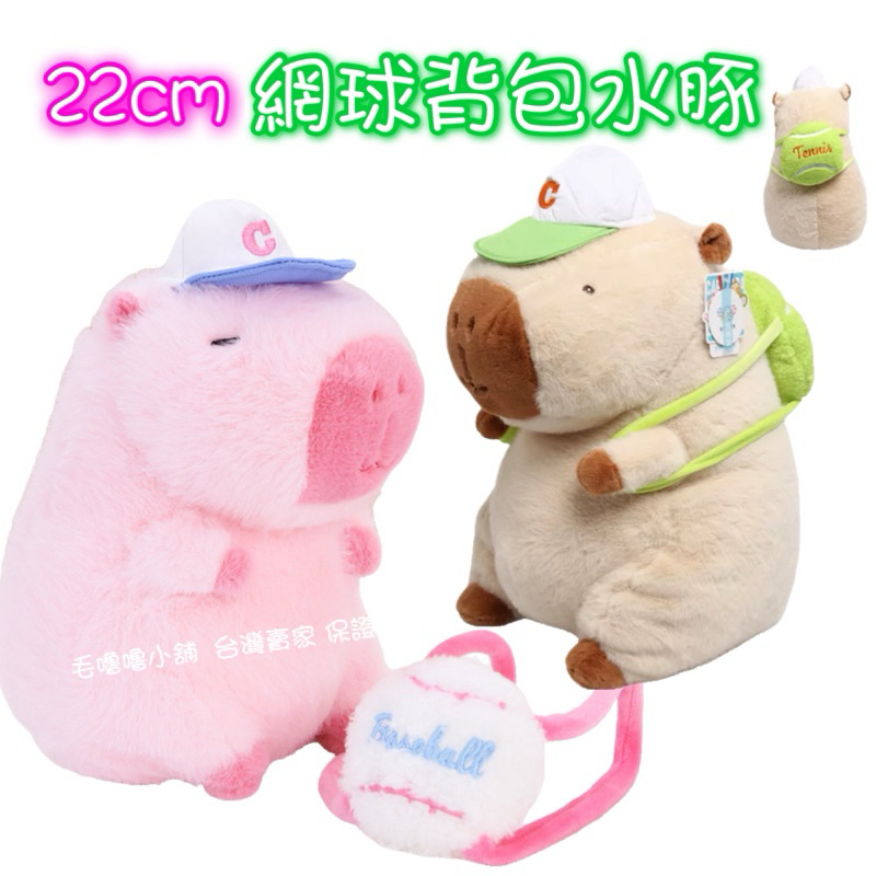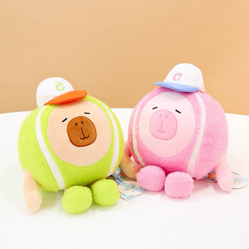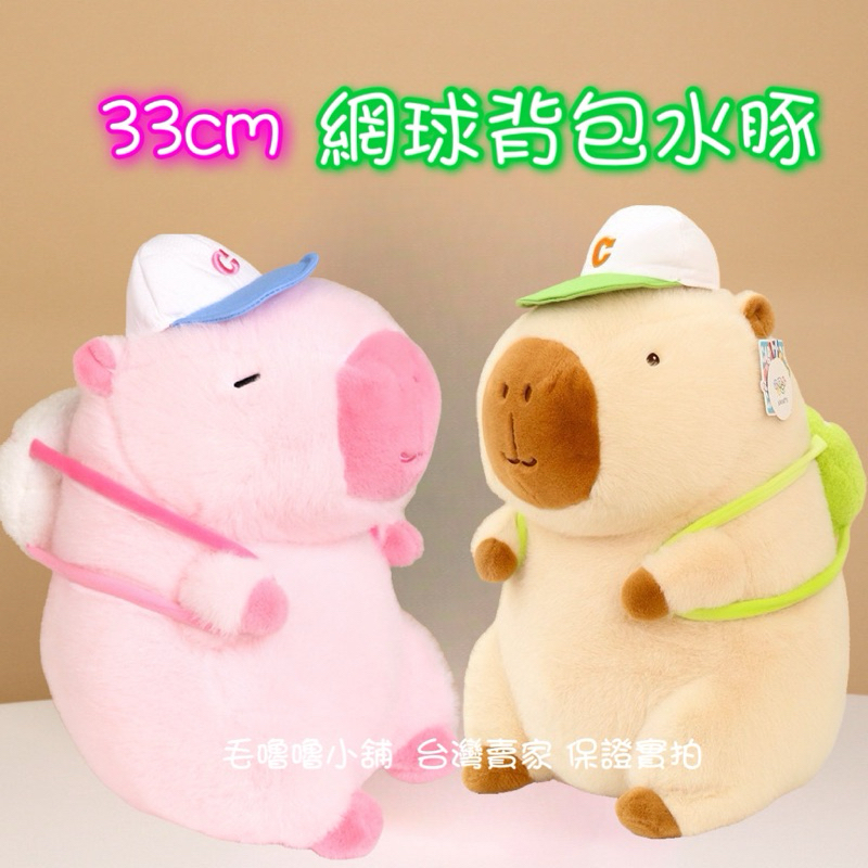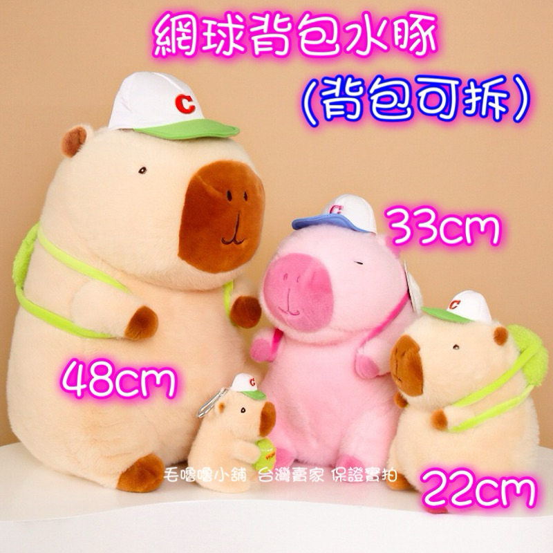 台灣現貨❤️正版譚健次同款運動水豚網球卡皮巴拉抱枕掛件吊飾拉線伸縮網球水豚