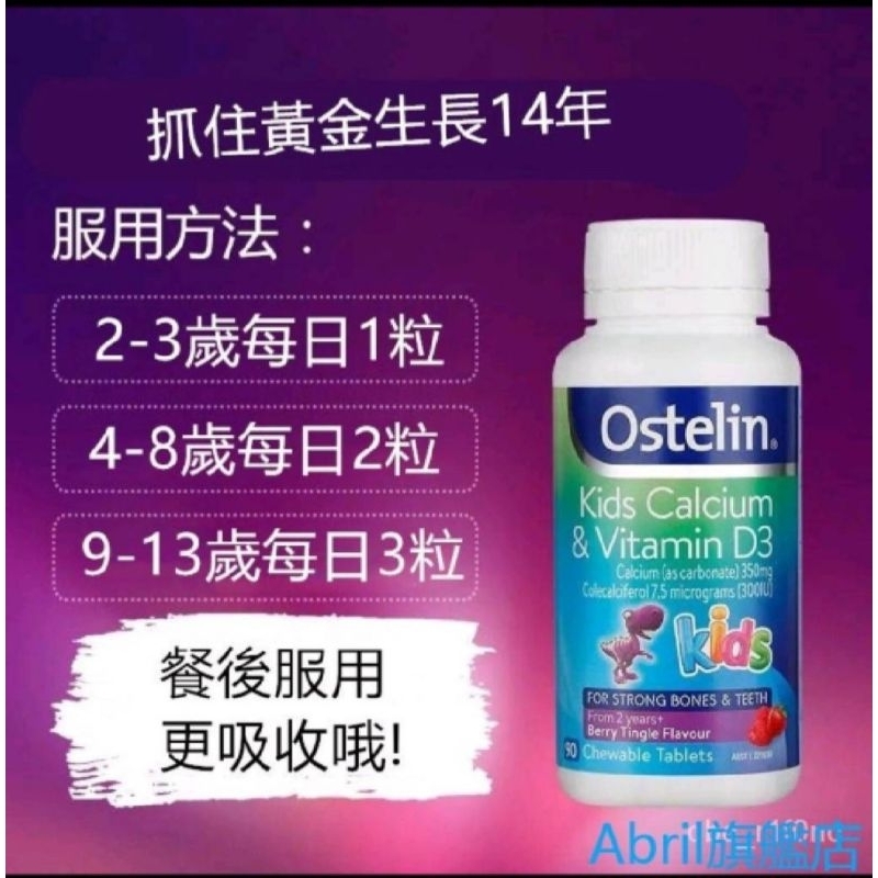 🇦🇺澳洲Ostelin 恐龍兒童鈣+D3 咀嚼錠 (90粒) (莓果口味)