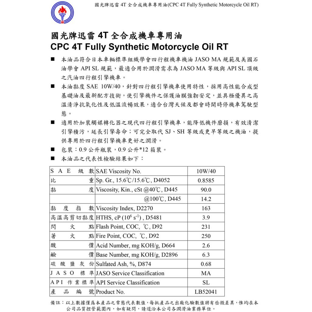 中油 國光牌迅雷 4T 全合成機車專用油