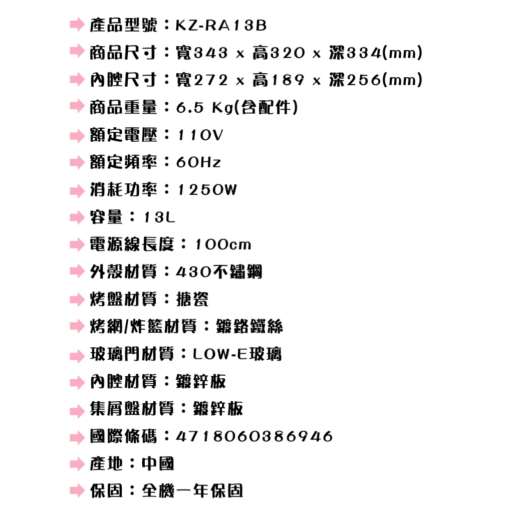 SAMPO 聲寶 13L多功能氣炸電烤箱 KZ-RA13B