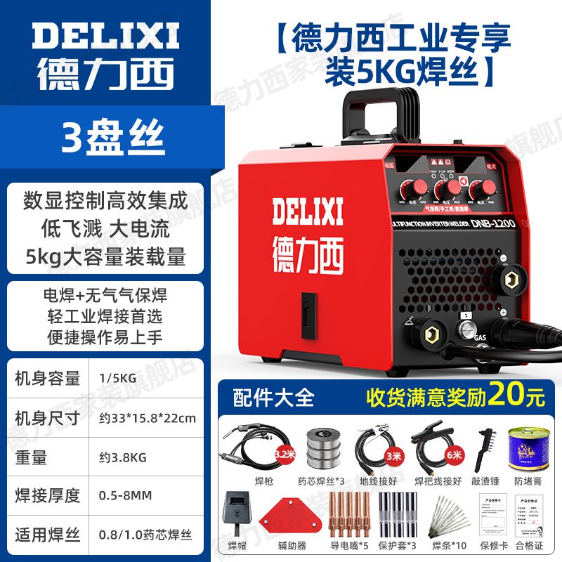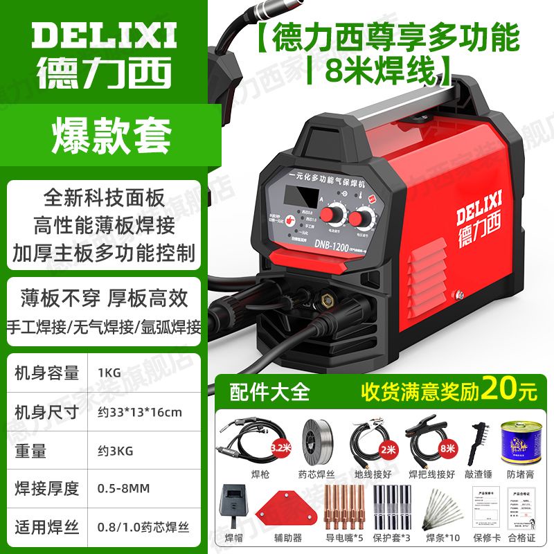 德力西無氣二保焊機1200家用220v電焊二保焊三用壹體工業氣保焊機joe182450