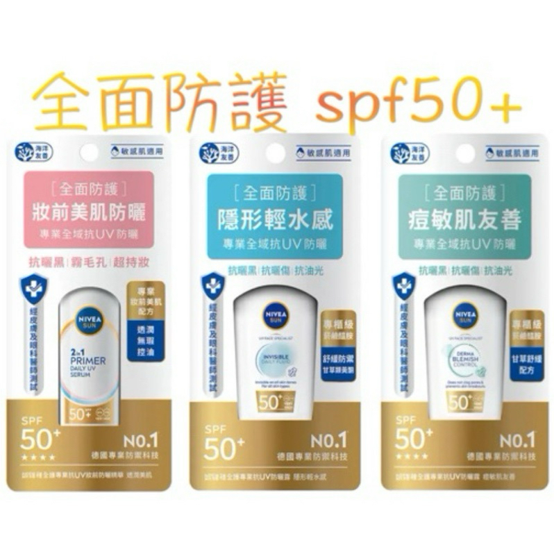 NIVEA 妮維雅全護專業抗UV防曬露 痘敏肌 海洋友善/隱形輕水感/妝前美肌 40ml spf50+