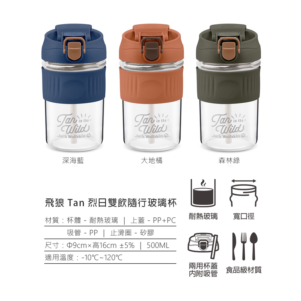 【Jack wolfskin 飛狼】TAN烈日 雙飲耐熱玻璃隨行杯(500ml)|3色任選