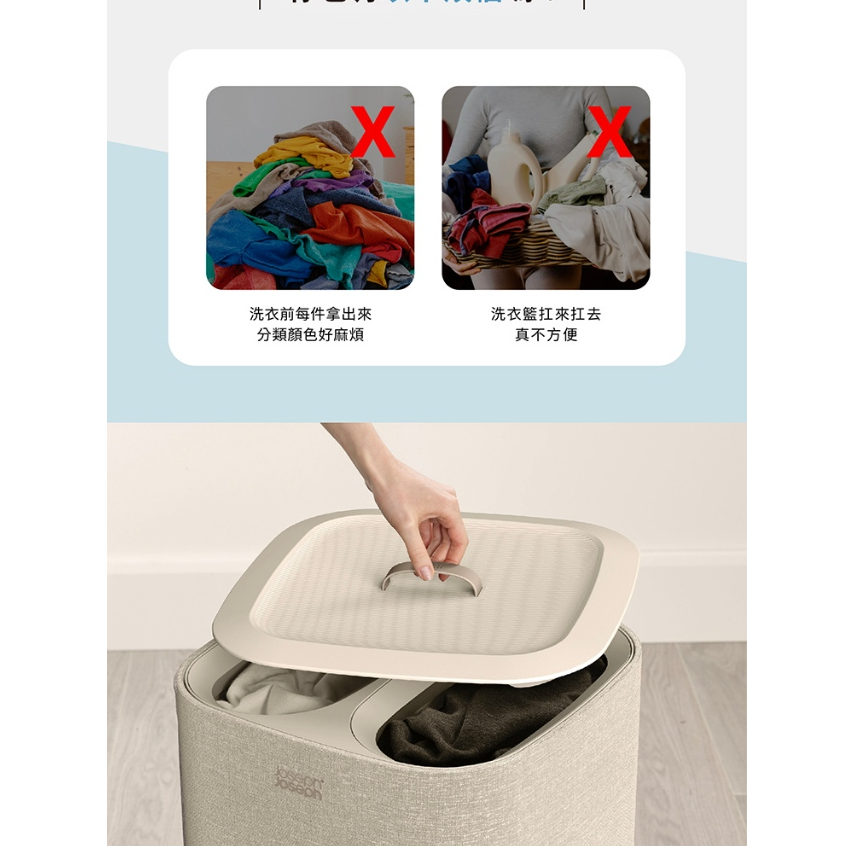 【Joseph Joseph】 Tota 60L 分類洗衣籃(雙格) 黑|灰|米白