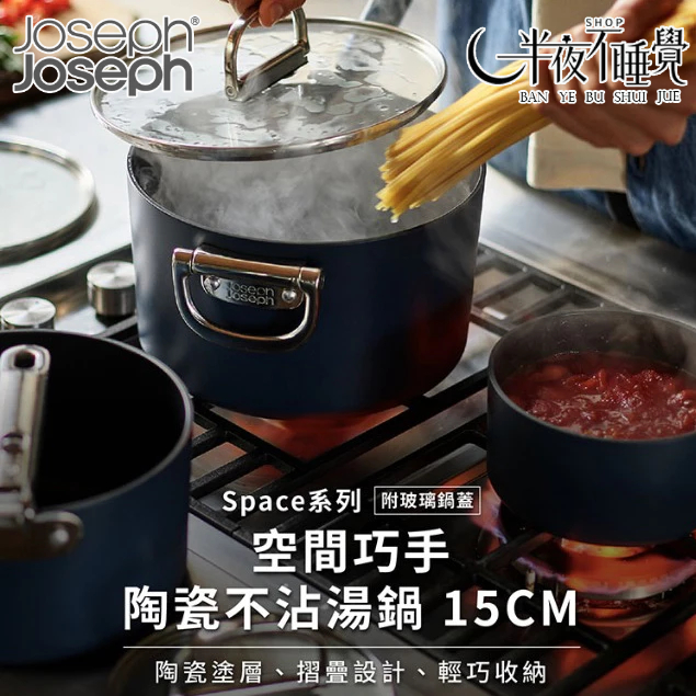 【Joseph Joseph】Space系列 空間巧手陶瓷不沾湯鍋15CM(附玻璃鍋蓋) 鍋具系列| JJ|原廠公司貨