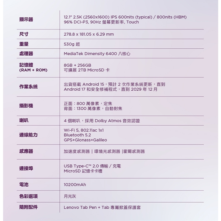 Lenovo 聯想 Idea Tab Plus TB361FU 8G/256G WiFi版 12.1吋平板電腦