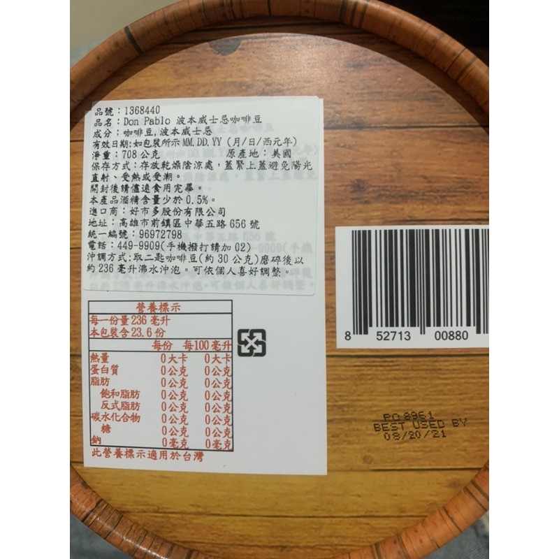【蝦皮茉兒】 Don Pablo 波本威士忌咖啡豆708公克 美國製 COSTCO 好市多 好事多 #1368440