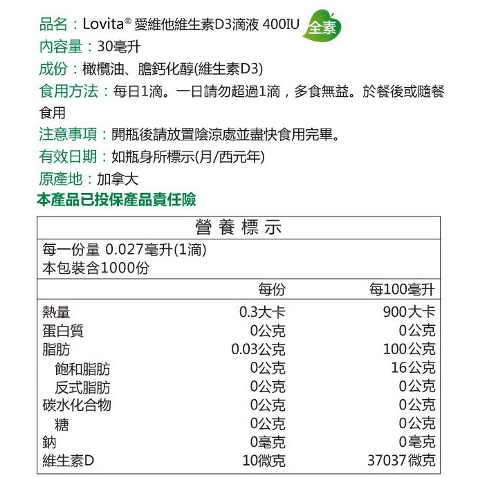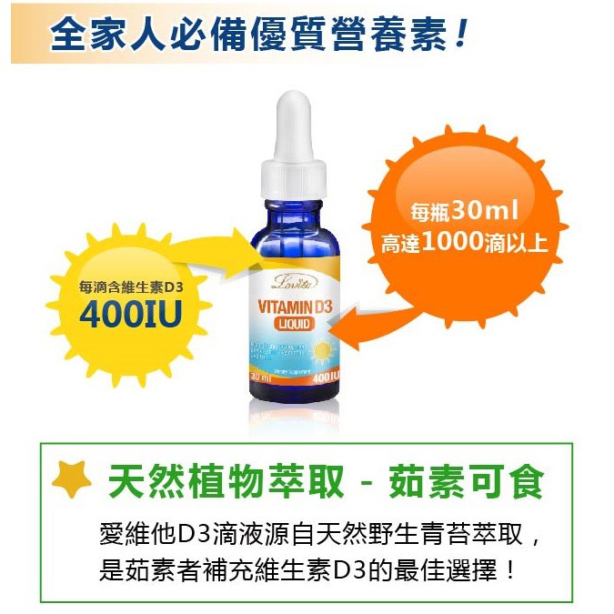 Lovita愛維他-素食維生素D3滴液(30ml-1000天份)【活力達康站】