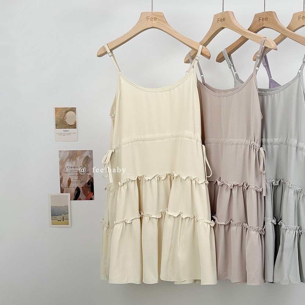【Fee隔日到貨9色】細肩帶蛋糕裙襬洋裝🔥蛋糕裙 短洋裝 無袖 洋裝 連身裙 可調式肩帶 吊帶裙 白色洋裝