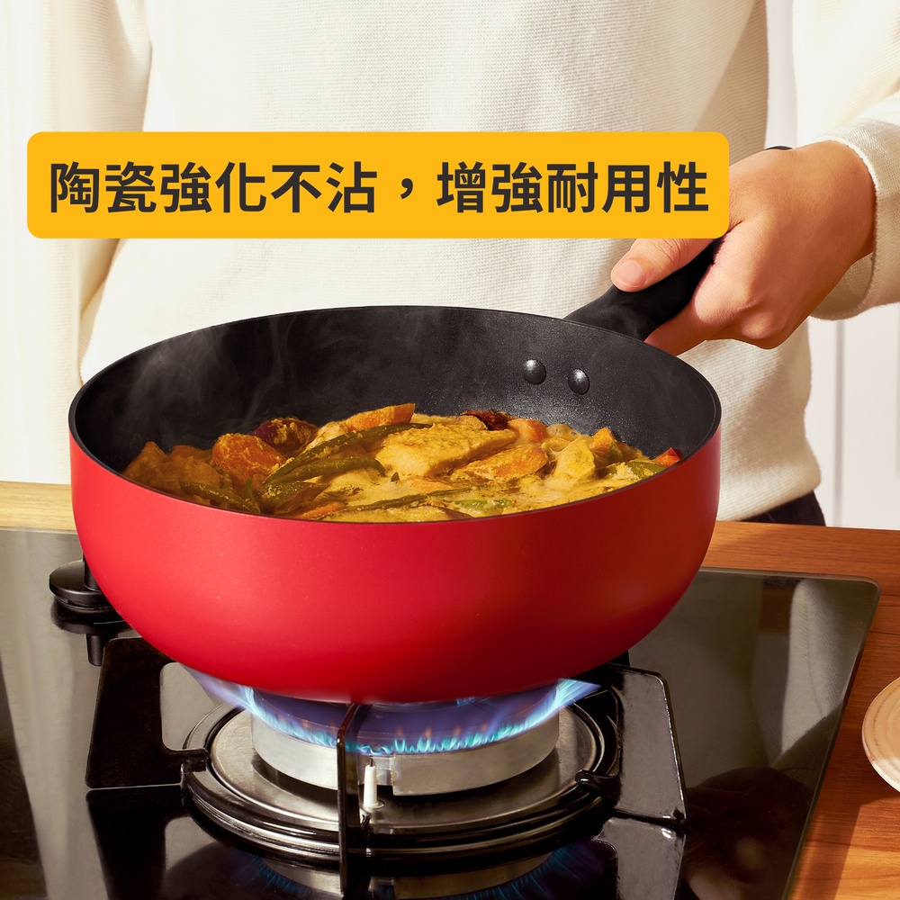 【MEYER 美亞】IH導磁陶瓷不沾 湯鍋 16CM / 18CM (含蓋) - 革新紅系列