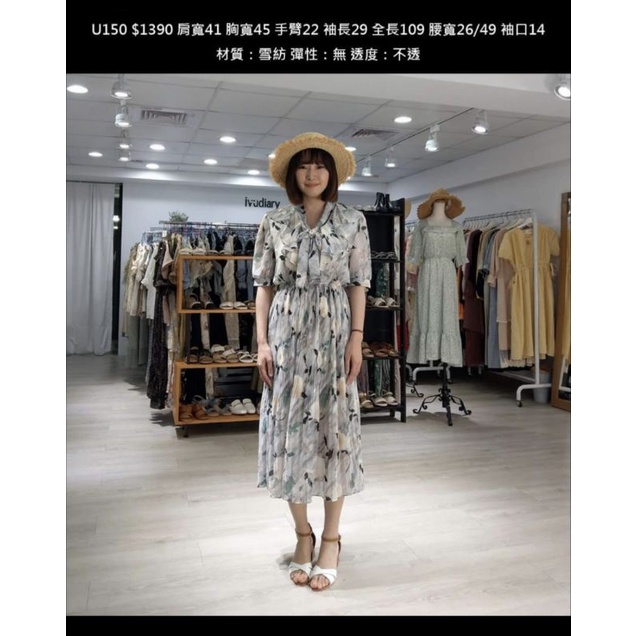 正韓韓貨衣服日記Dobe Jade 素描暈染花卉百褶綁帶襯衫領雪紡長袖洋裝