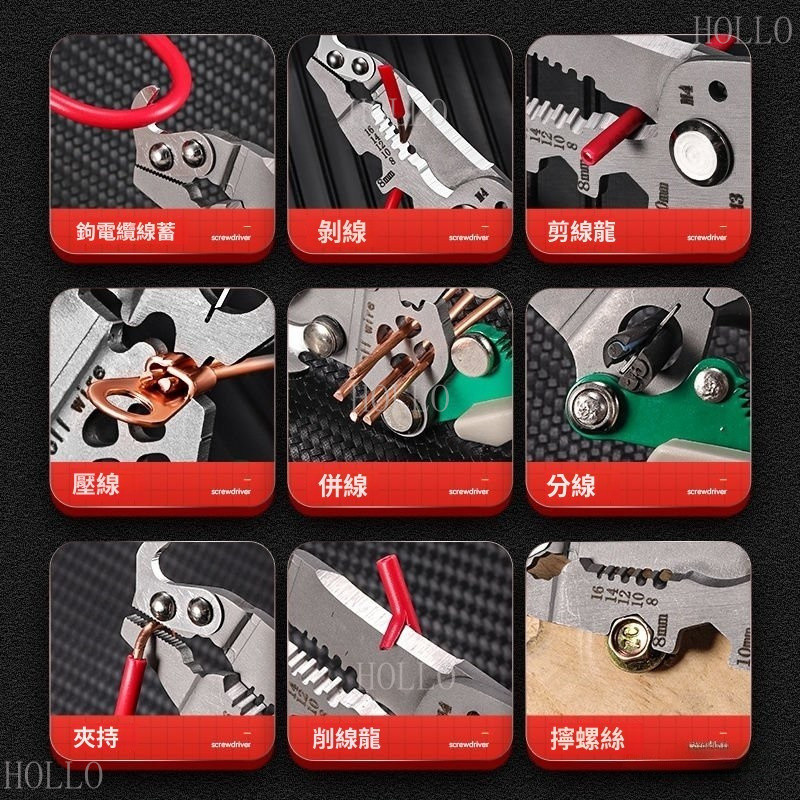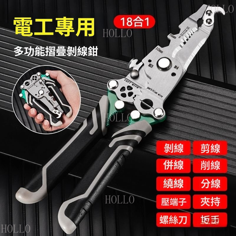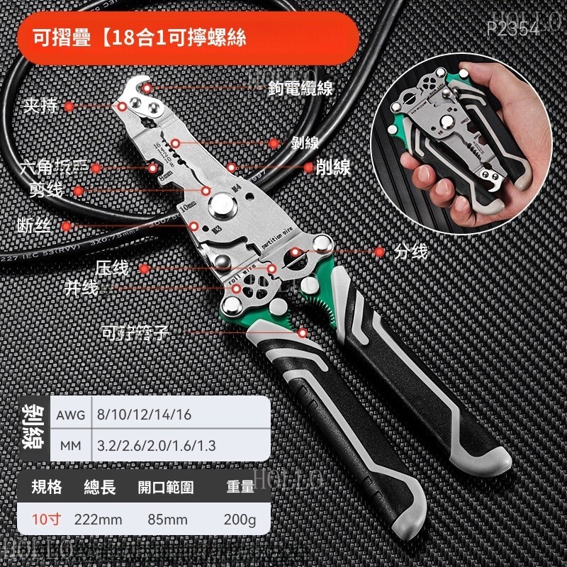 下殺~18合一多功能可折疊剝綫鉗子分綫扒皮壓綫繞綫剪綫電工專用剝線鉗 多功能剝線鉗 繞線鉗 扒皮鉗 剪線工具 壓線