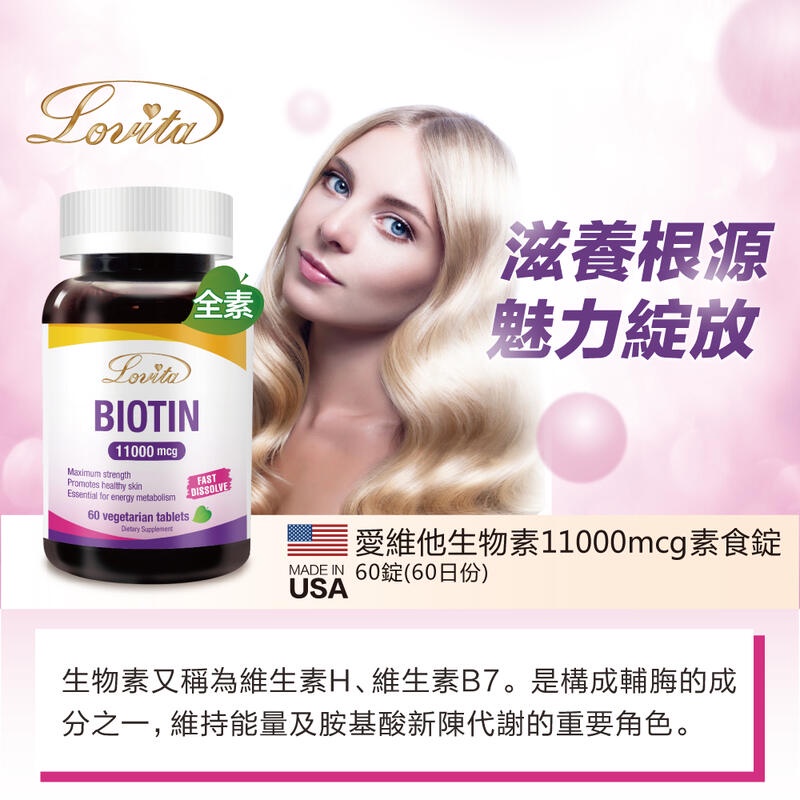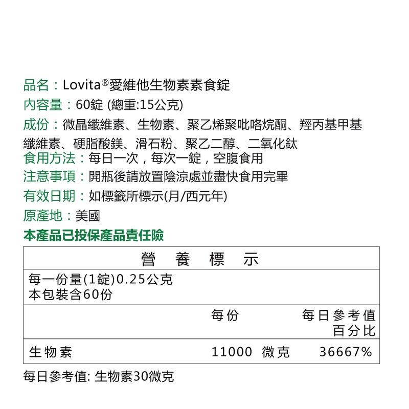 Lovita 愛維他 生物素 11000mcg 60錠(素食 biotin 維他命H 維生素B7)