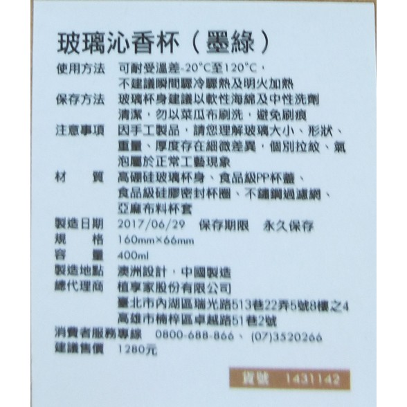 Bonnie House 植享家 玻璃沁香杯 (墨綠)(400ml)﹝小資屋﹞