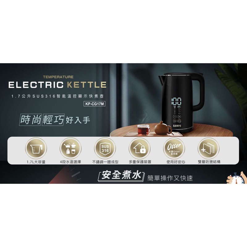 《超新小物出清》【聲寶】1.7L大容量溫控顯示不銹鋼快煮壺 熱水瓶 KP-CG17M 二手