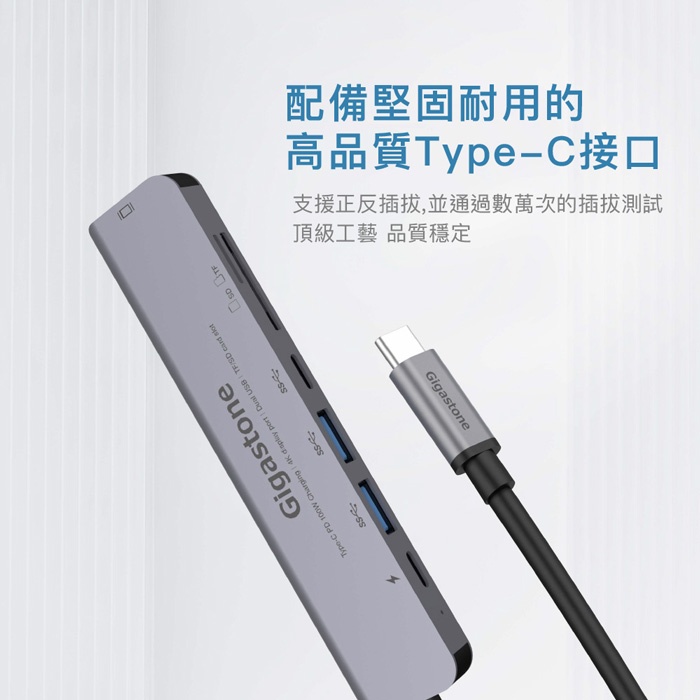 【Gigastone】7合1多功能 100W PD充電 Type-C HUB集線器 (Hub-P7) 支援switch