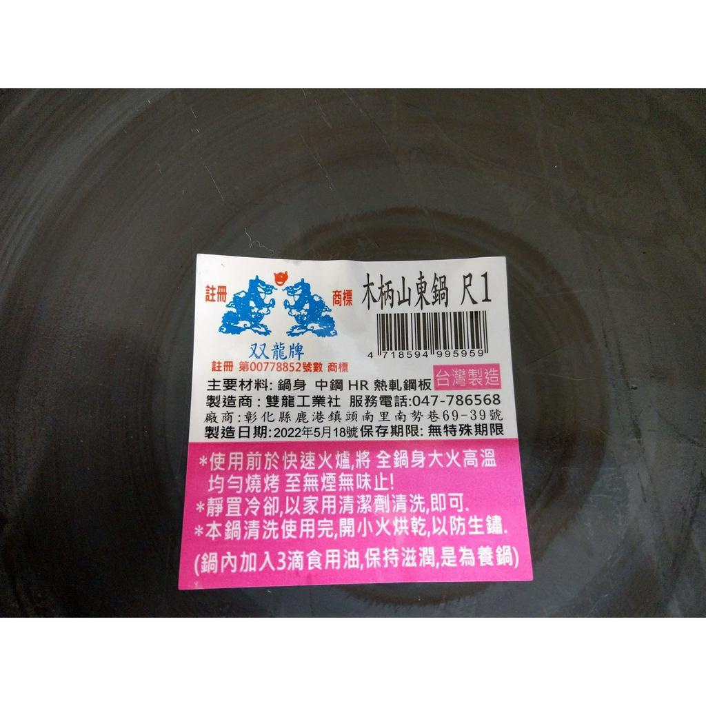 【附發票】台灣製 雙龍牌 木柄 山東鍋 單柄 山東鐵鍋 中華炒鍋