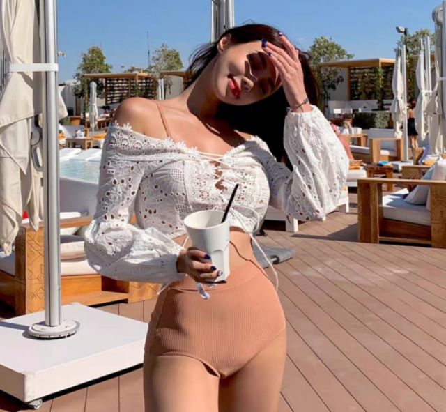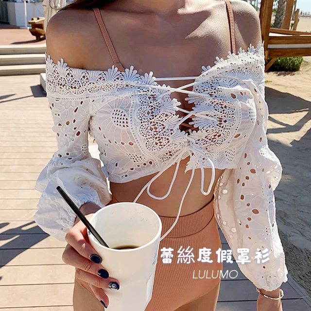 ❤現貨推薦❤浪漫仙女蕾絲短版綁帶一字領罩衫 度假短罩衫 背心洋裝蕾絲罩衫 度假必備罩衫 白色綁帶蕾絲罩衫