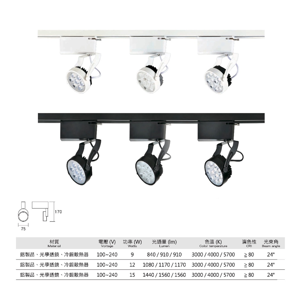 MIT台灣製造 LED 15W 軌道燈 含稅附發票 二年保固 歐司朗晶片 冷鍛式散熱 投射燈 投光燈 居家商用照明 現貨