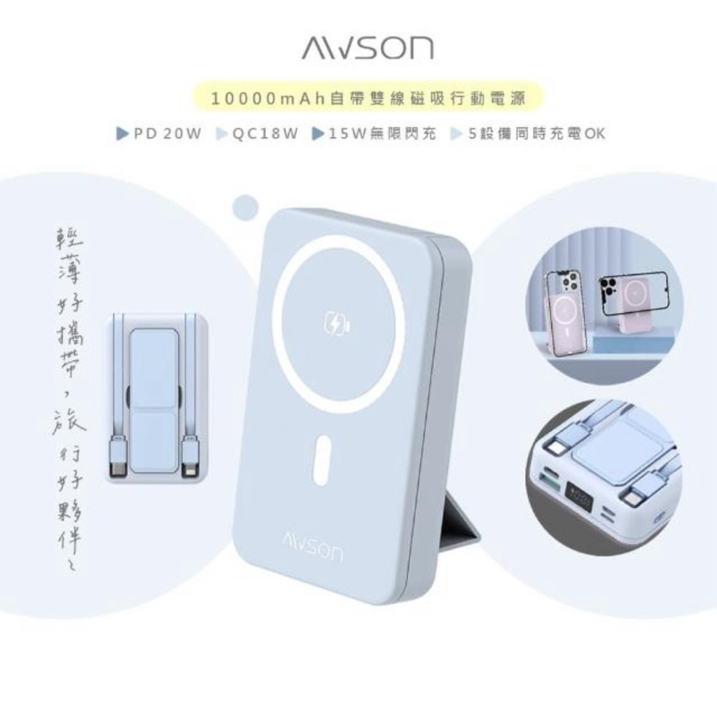 AWSON 歐森 日本歐森10000mAh七合一磁吸充電/磁吸行動電源/AWP-5733(自帶線/無線閃充/20W快充)