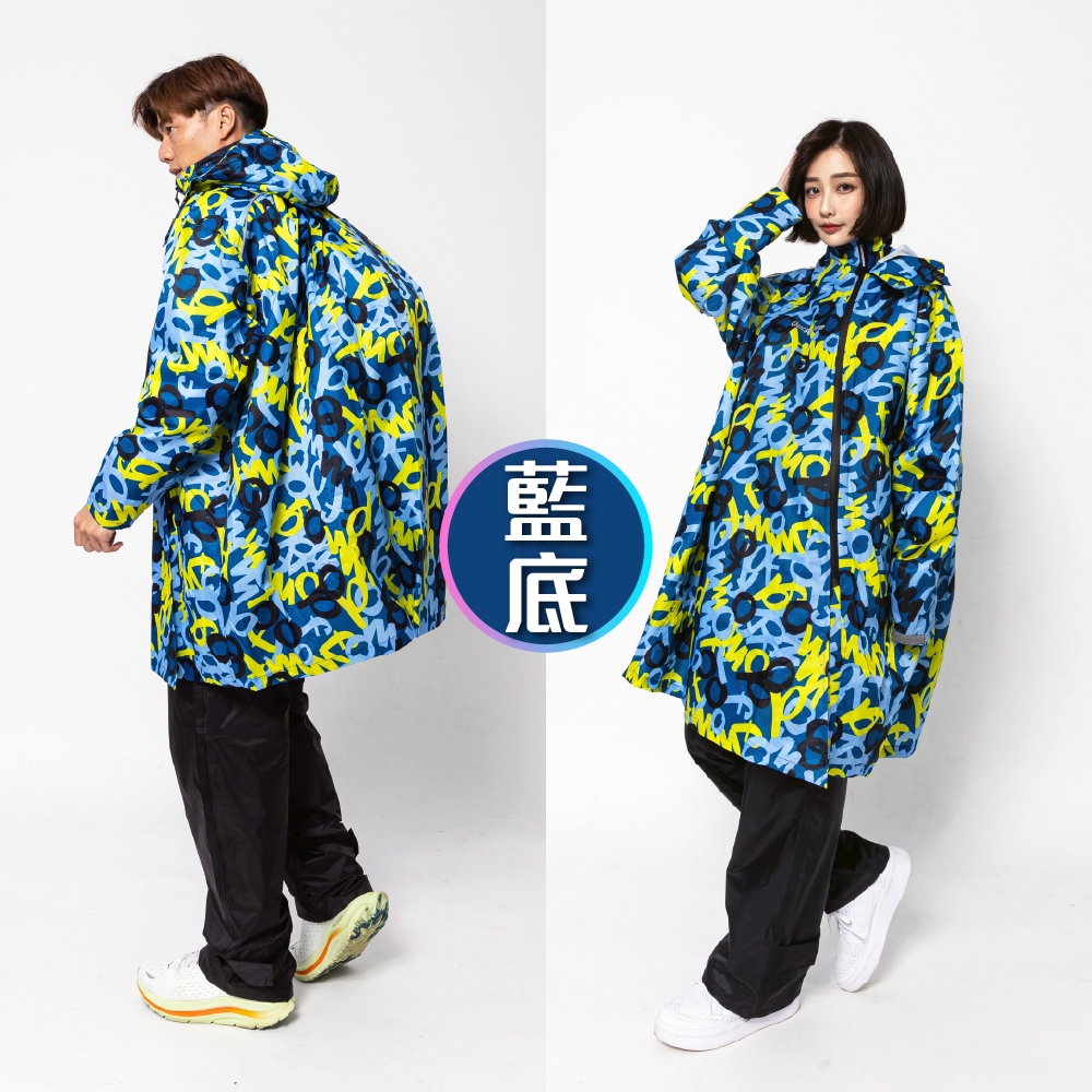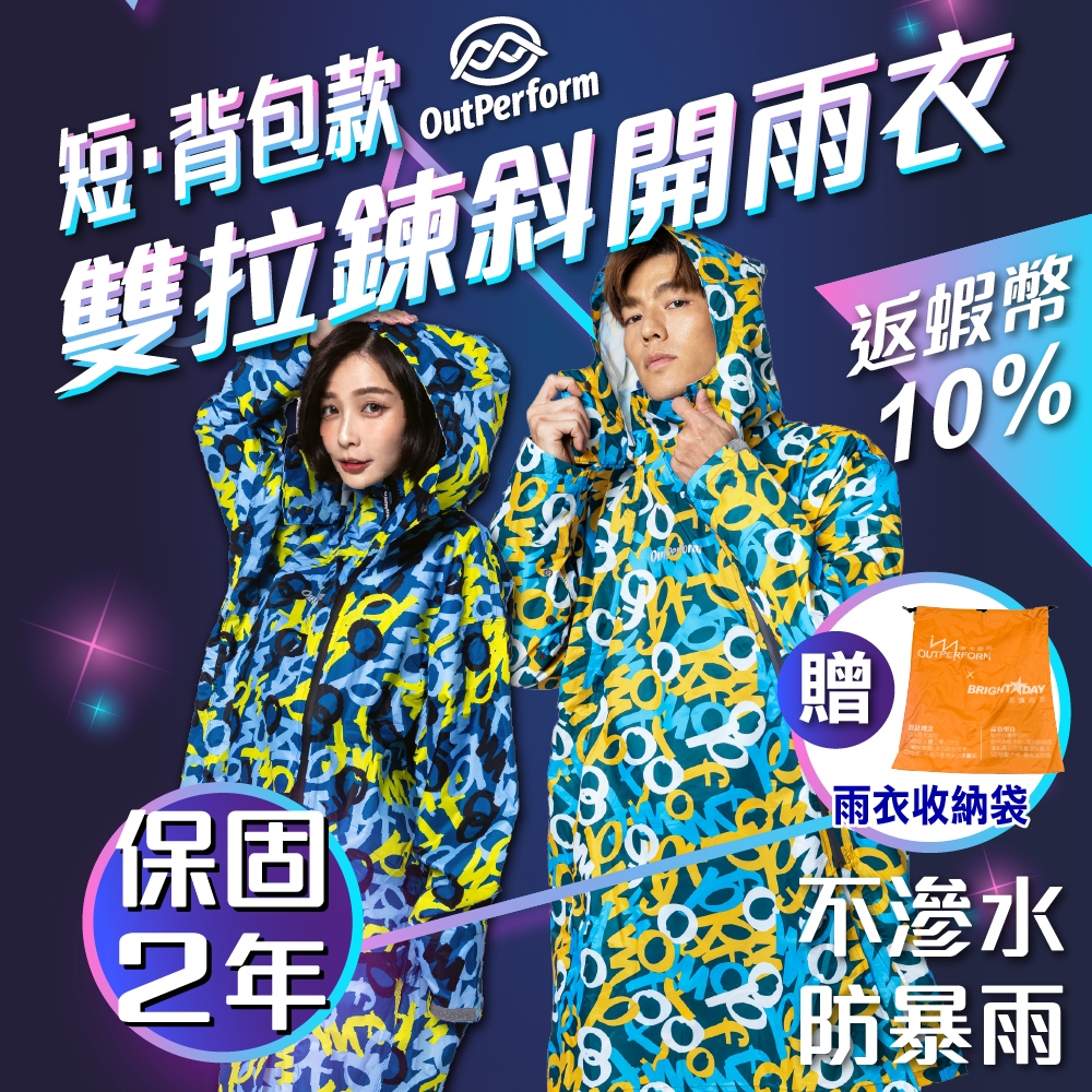 [原廠現貨,2年保] 短版.迷彩背包款雙拉鍊斜開式雨衣-一件式連身--不含雨褲-不滲水防暴雨-奧德蒙outperform