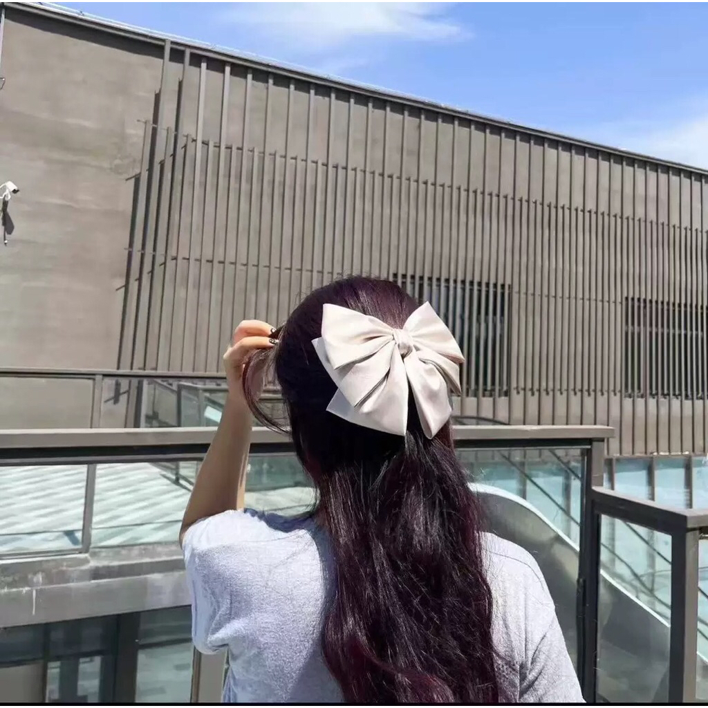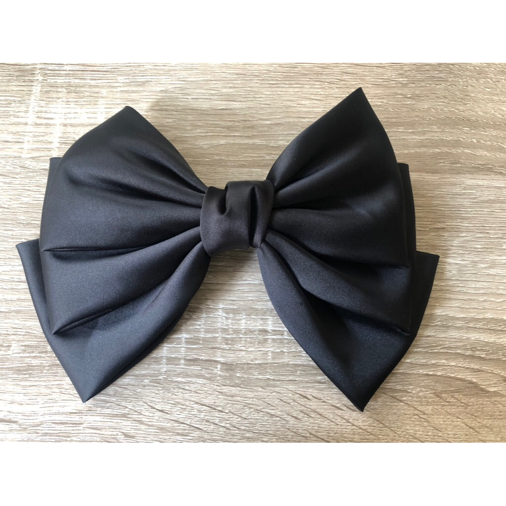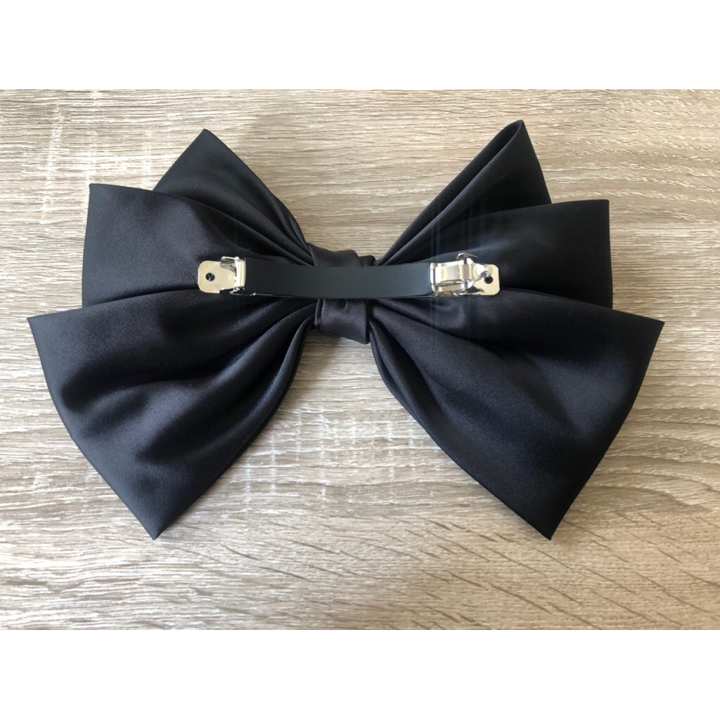 韓垂墜感緞面微巨蝴蝶結彈簧髮夾髮飾頭飾黑