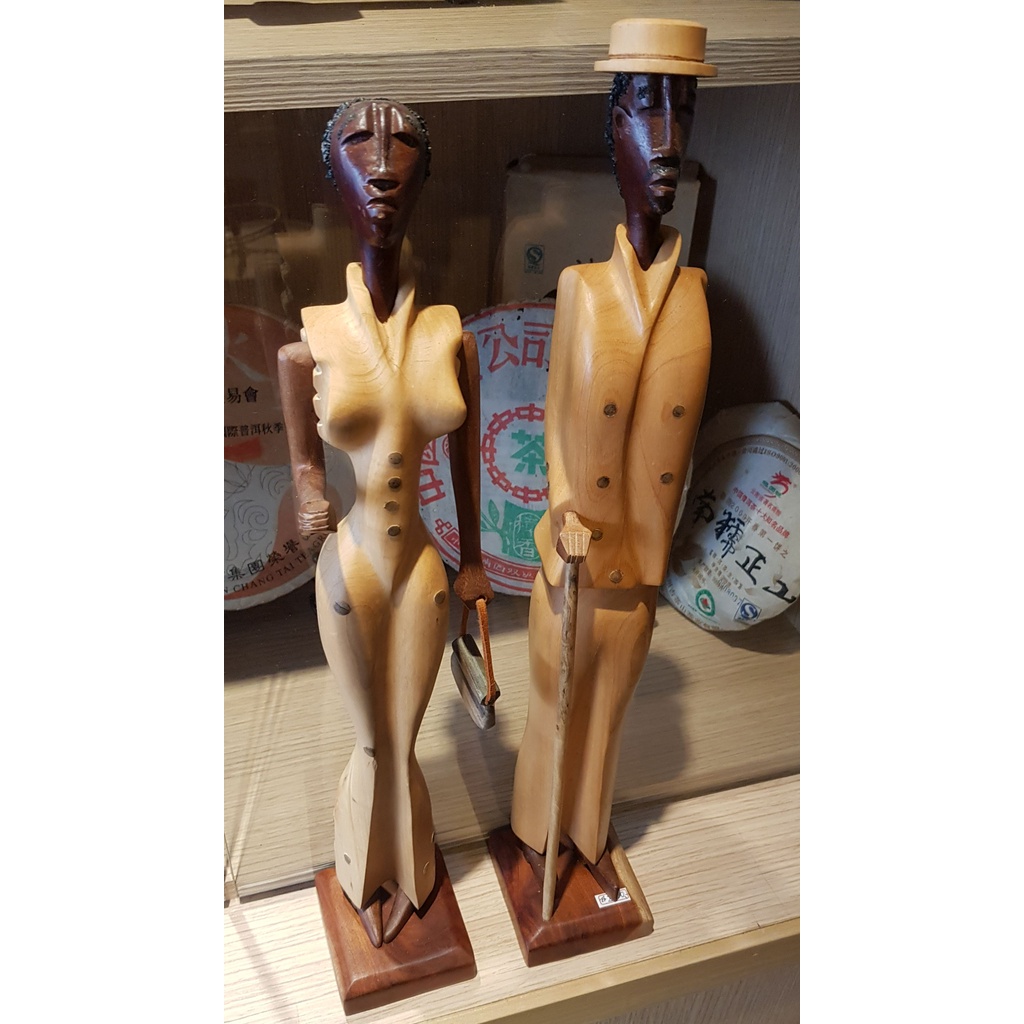 紳士淑女木雕(一對) 木雕裝飾品 手工木雕藝術 木制家居裝飾 木雕雕塑 木質擺飾 雕刻木製工藝品