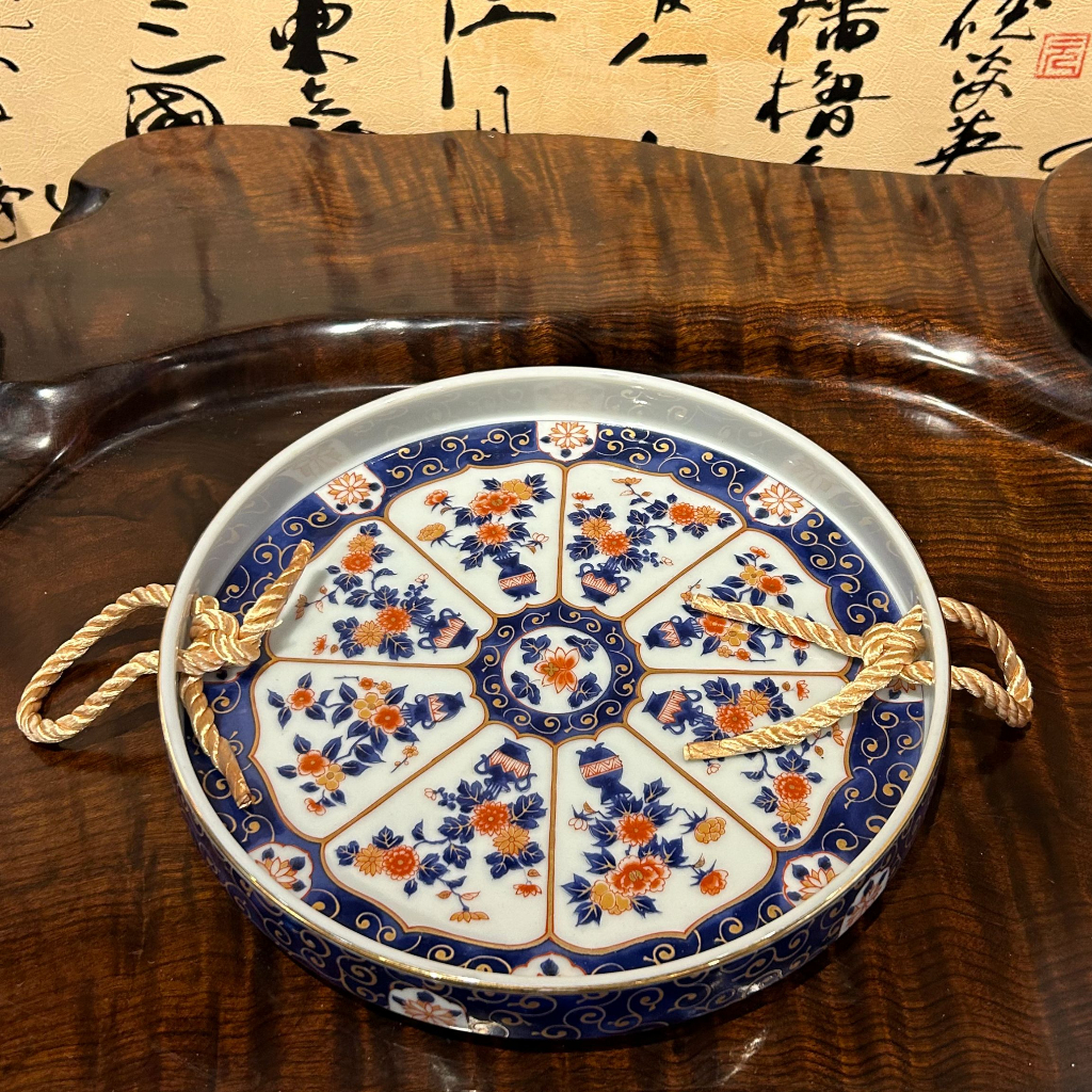 古風花紋水果盤 編織提手 水果盤 零食盤 點心盤 飾品盤