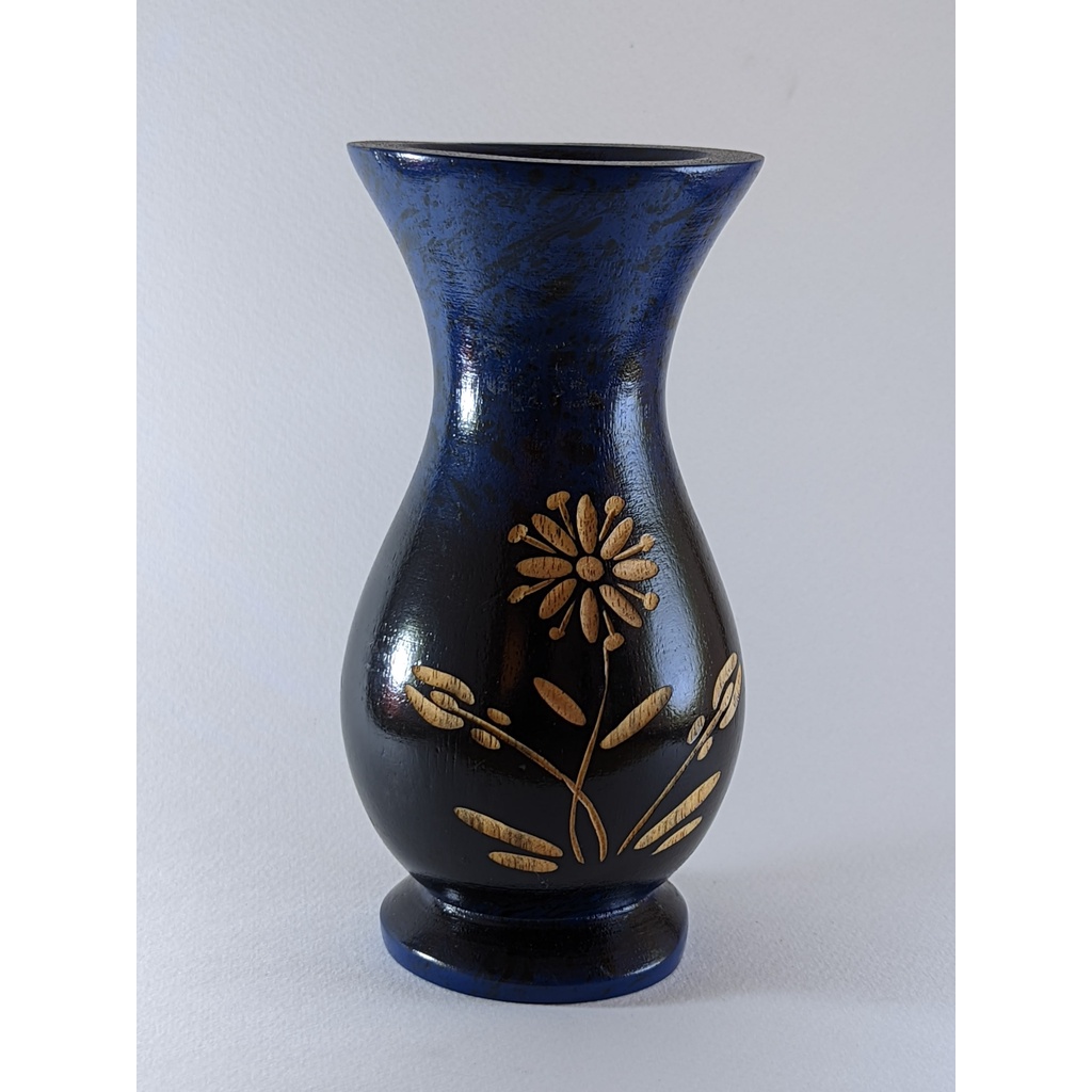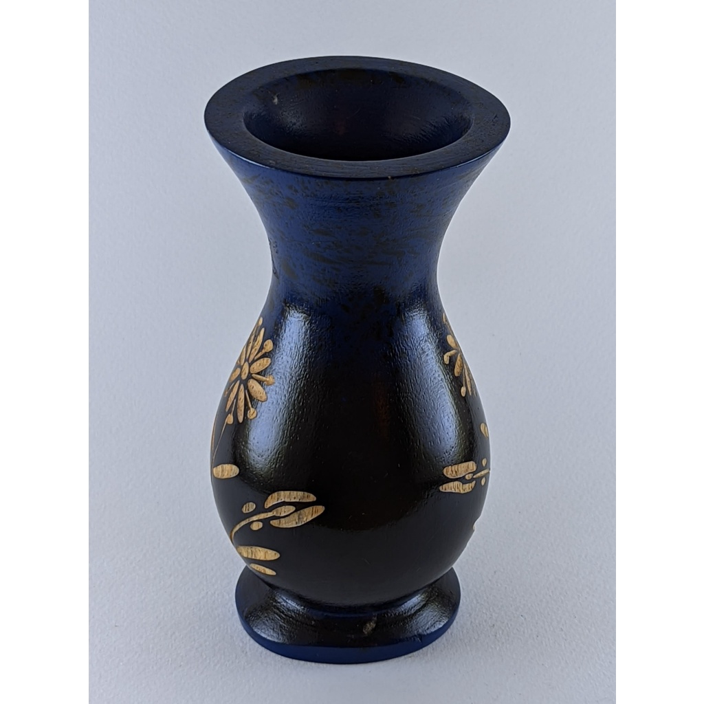 藍漆花紋雕刻木瓶 木製品