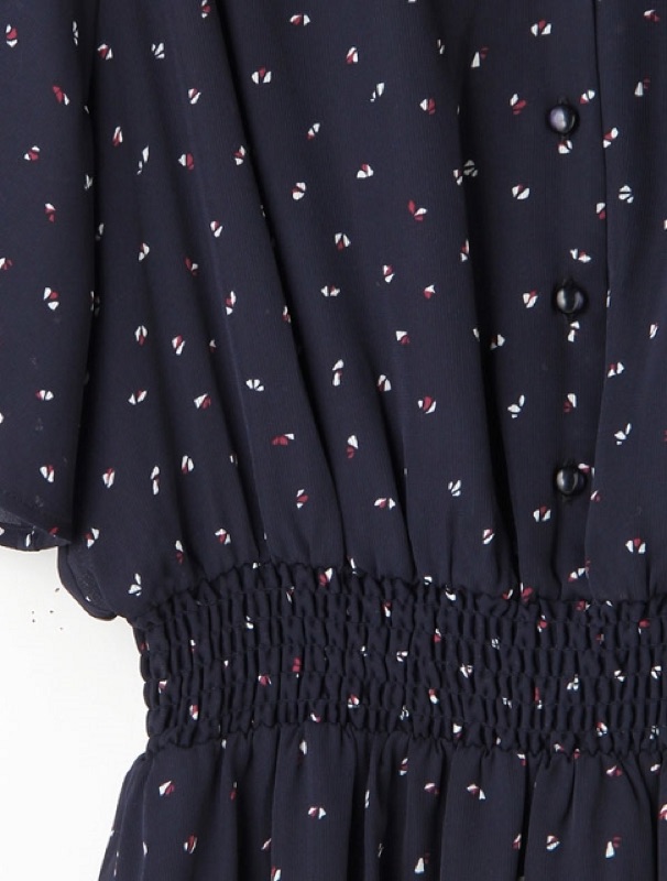 yabbi日貨-GLACIER V領前扣腰部鬆緊後交叉綁帶雪紡洋裝