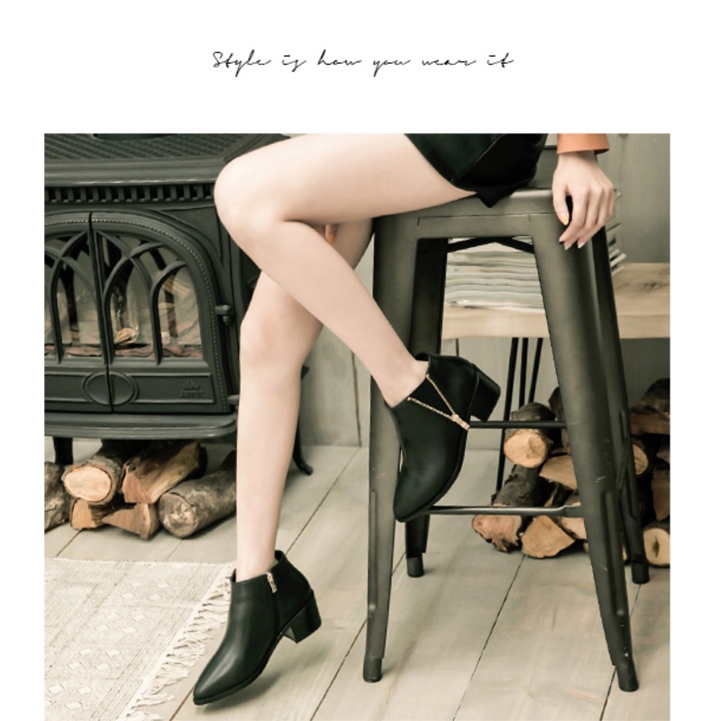 全新! 現貨! 斷貨款 Amai* 頂級真皮 - 牛皮金屬拉鏈造型拼接萊卡尖頭短靴/36/23/黑色